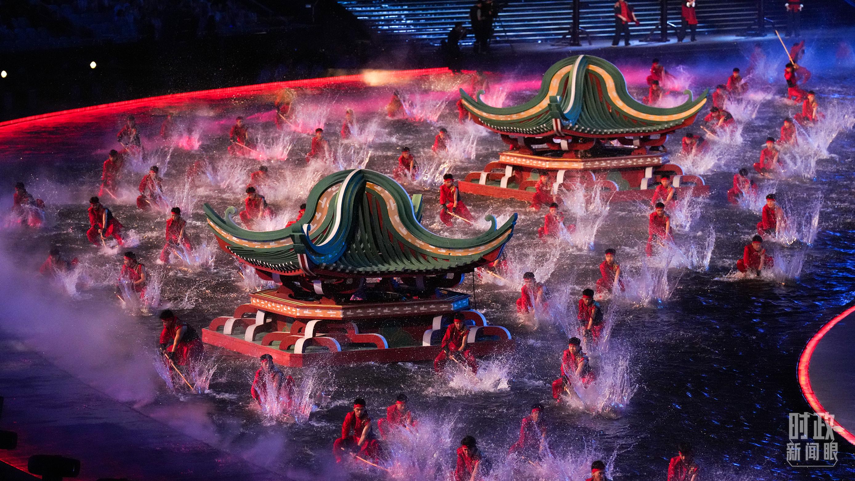 廣東奧體中心內(nèi),一幅運(yùn)用人工智能技術(shù)、展現(xiàn)嶺南瑰麗風(fēng)光的“長(zhǎng)卷”徐徐鋪展。開幕式包括入場(chǎng)儀式、奏唱國(guó)歌、參賽運(yùn)動(dòng)員等代表宣誓、文體展演、主火炬點(diǎn)燃儀式等多個(gè)環(huán)節(jié)。其中,展現(xiàn)粵港澳三地?cái)y手合辦的“同心”“融合”等元素,成為這場(chǎng)開幕式的一大特點(diǎn)。