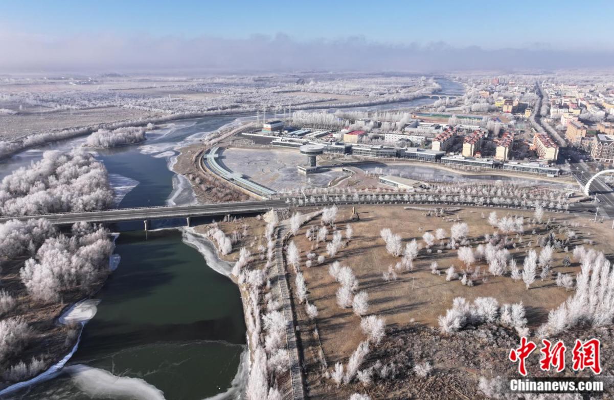 冬日的布爾津縣,額爾齊斯河穿城而過(guò)。