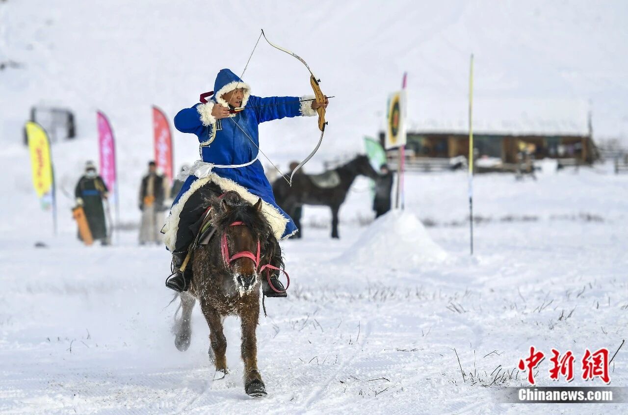 新疆禾木:牧民表演騎馬射箭。劉新 攝