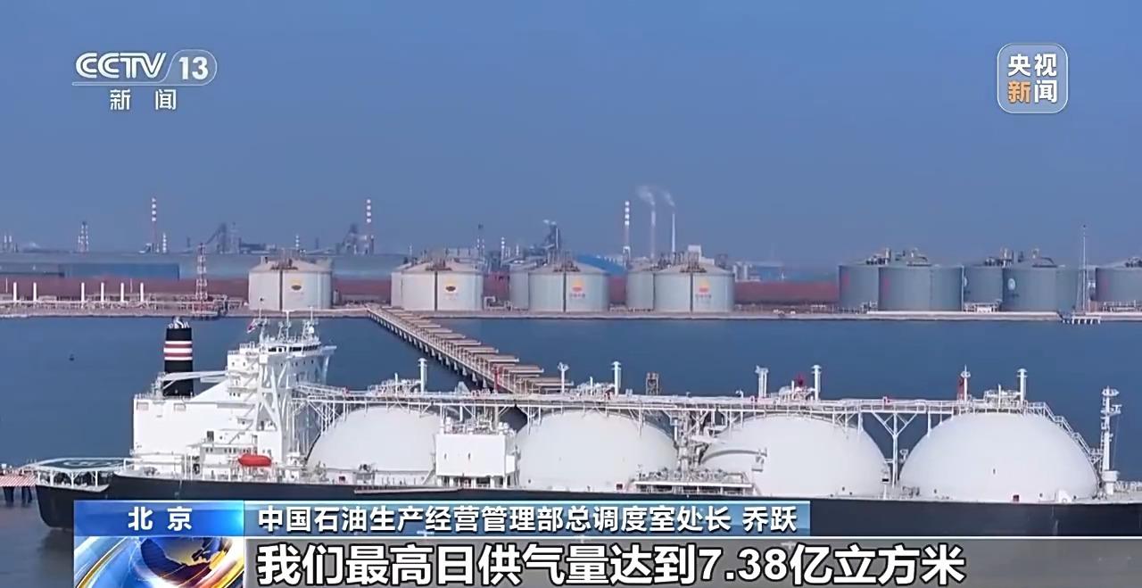 中國石油生產經營管理部總調度室處長 喬躍:我們組織長慶、塔里木、西南、青海等油氣田開足馬力,全力增產;我們最高日供氣量達到7.38億立方米,保障北方地區(qū)集中供暖。
