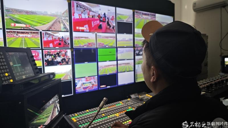 工作人員在導(dǎo)播臺(tái)觀看賽事畫面。石榴云/新疆日?qǐng)?bào)記者宋海波攝