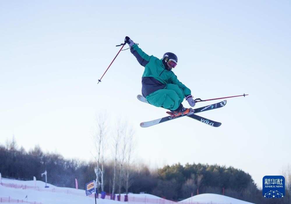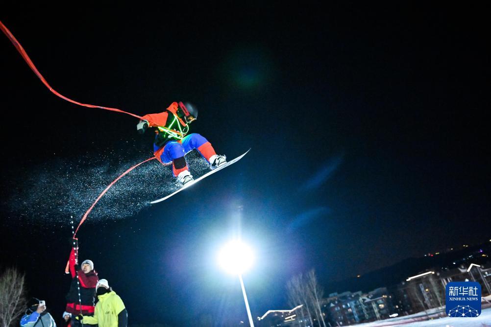 2022年12月10日,滑雪愛(ài)好者在位于吉林省吉林市的松花湖度假區(qū)V-PARK地形公園挑戰(zhàn)跳臺(tái)滑雪。新華社記者顏麟蘊(yùn)攝