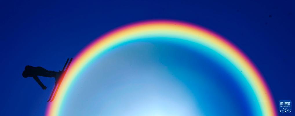 2012年1月7日,第12屆全國(guó)冬季運(yùn)動(dòng)會(huì)自由式滑雪空中技巧規(guī)定動(dòng)作的比賽在吉林市北大壺滑雪場(chǎng)舉行。圖為齊齊哈爾市隊(duì)的女選手孔凡鈺在比賽中進(jìn)行空中翻轉(zhuǎn)時(shí),仿佛從太陽(yáng)的光暈上滑下來(lái)。新華社記者費(fèi)茂華攝