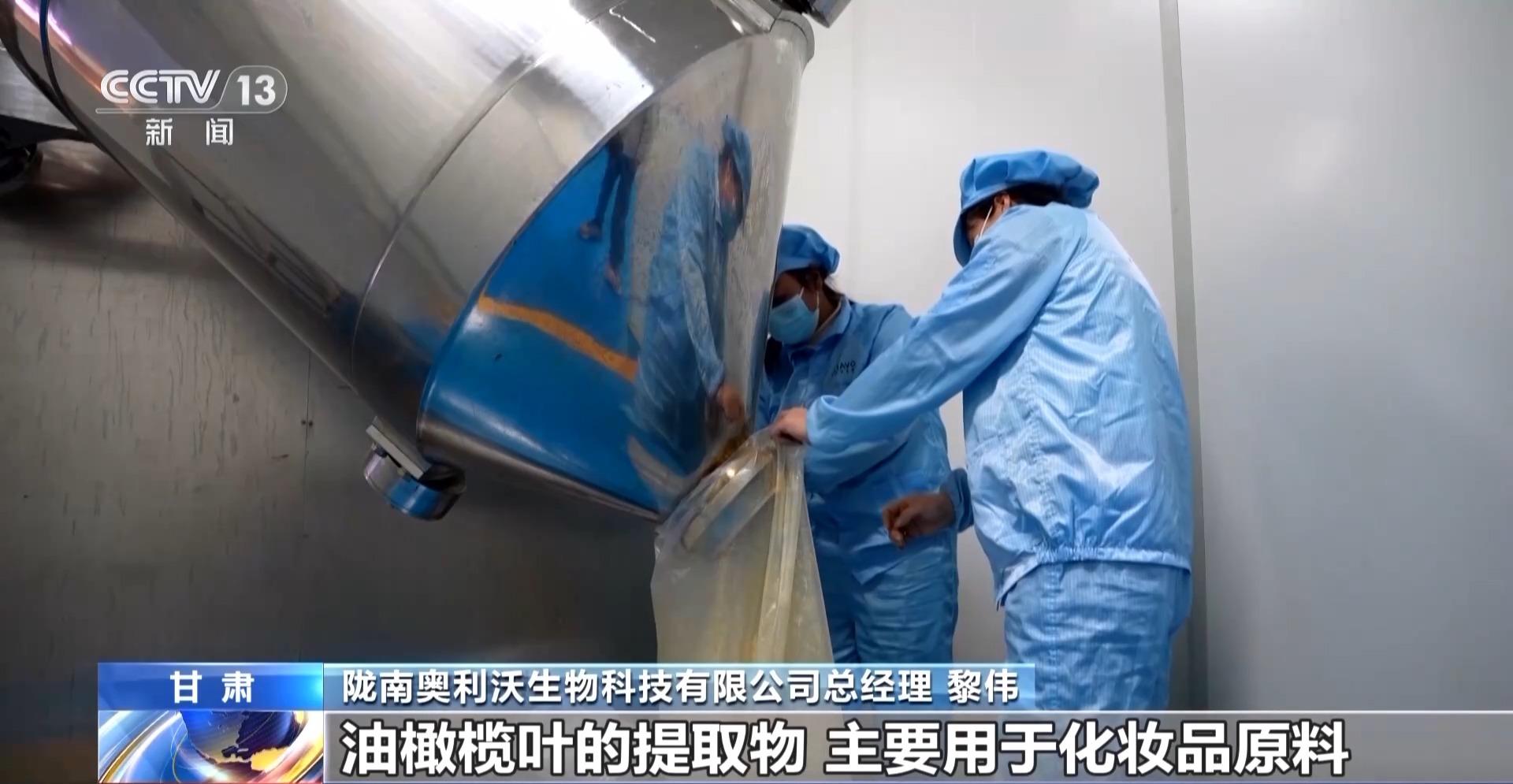 隴南奧利沃生物科技有限公司總經(jīng)理 黎偉:油橄欖葉的提取物主要用于化妝品原料;油橄欖果渣主要是提取山楂酸,用于飼料添加,提取完之后所有的廢渣,我們會(huì)做成生物質(zhì)顆粒;果核分出來(lái)之后能做成高端活性炭。在副產(chǎn)物方面,我們綜合利用率能達(dá)到70%。