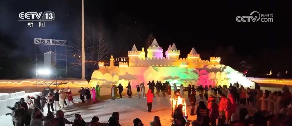 夜幕下的漠河市北極村被燈光點(diǎn)亮,惟妙惟肖的雪雕有了不一樣的顏色。在小廣場(chǎng)上,天南地北的游客聚在一起攜手起舞,并用鏡頭記錄下浪漫的煙火。為滿足滑雪愛(ài)好者的需求,當(dāng)?shù)匮﹫?chǎng)今年首次開(kāi)放夜滑,并新增了雪道。