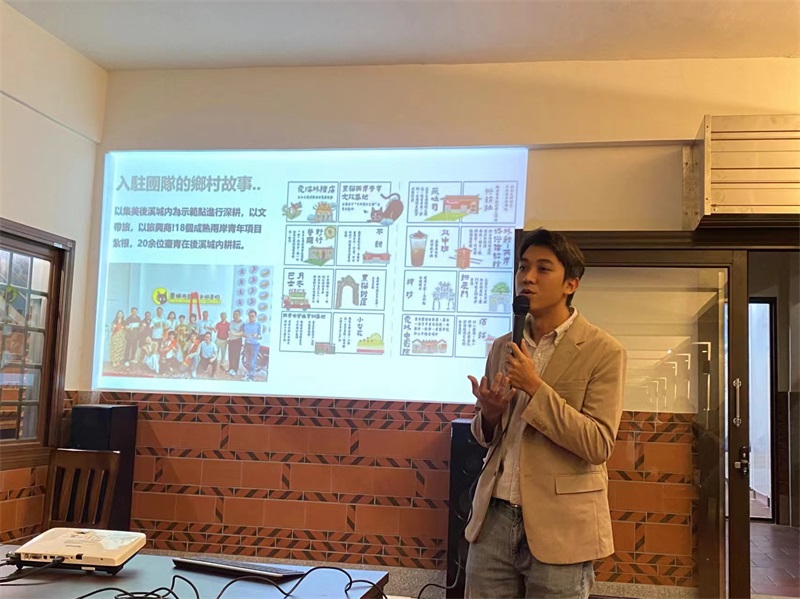 吳炳璋分享鄉(xiāng)村的故事。受訪者 供圖 東南網(wǎng)2月5日?qǐng)?bào)道(記者 盧金福)近日,30多名兩岸青年在廈門集美區(qū)城內(nèi)不耕小院和大師工作坊兩地一起享受了一場(chǎng)氛圍感和煙火氣滿滿的迎新春活動(dòng)。在福建創(chuàng)業(yè)奮斗的臺(tái)灣青年、黑貓兩岸青年文旅基地執(zhí)行長(zhǎng)吳炳璋等臺(tái)青們還走進(jìn)城內(nèi)村村民家中將書寫的“?!弊仲?zèng)送給城內(nèi)的居民,與他們分享新春的喜悅與祝福。來(lái)到大陸創(chuàng)業(yè)6年來(lái),吳炳璋帶領(lǐng)兩岸青年走進(jìn)鄉(xiāng)村,開(kāi)展文旅融合、空間改造、制作短視頻等活動(dòng),挖掘風(fēng)俗、村史、美食等,幫助大陸鄉(xiāng)村挖掘文化,實(shí)現(xiàn)鄉(xiāng)村振興。