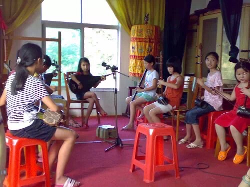 后排左數(shù)第四是莎莎 受訪者供圖 莎莎名叫李莎莎,是土生土長的泉州晉江人,90后的她,學(xué)唱南音已經(jīng)有20個(gè)年頭。她還記得,最初學(xué)南音那年,她剛9歲。 “我奶奶喜歡看戲,我小時(shí)候經(jīng)常跟奶奶去我們當(dāng)?shù)氐哪弦羯缛タ磻?,開始我就是跟著去玩的?!鄙f,起初,她只是覺得南音社里一群人聚在那里很熱鬧,而且每次去都有糖果吃。 但時(shí)間久了,耳濡目染之下,幼小的莎莎就成了南音社的一名小學(xué)員。“每天下午放學(xué)后和周末,都要去社團(tuán)學(xué)習(xí)?!备鷮W(xué)習(xí)其他戲曲一樣,學(xué)唱南音也要經(jīng)歷一段艱難的蛻變過程,這個(gè)過程漫長而又痛苦。 “南音的曲子最短的也有四五分鐘,長的有半個(gè)小時(shí)以上,所有的唱詞都要背下來。還要學(xué)習(xí)琵琶、二弦、三弦等樂器?!鄙貞浾f,當(dāng)時(shí),自己每次都提前一個(gè)多小時(shí)到課堂,“一個(gè)人練譜子、背唱詞,就是想比別人記得快一點(diǎn)”。 但慢慢地 ,和莎莎一起學(xué)南音的小姐妹陸續(xù)離開了南音社?!白疃嗟臅r(shí)候二三十個(gè)人,學(xué)到最后,只剩我們8個(gè)?!鄙f,堅(jiān)持學(xué)下來的人少,除了學(xué)習(xí)難度大、需要背的東西多外,還有一個(gè)重要的原因,就是南音實(shí)在太古老了。 “這種傳統(tǒng)的劇種很多人聽不來,不喜歡這種咿咿呀呀的唱腔,小時(shí)候就經(jīng)常被人家取笑。”莎莎還記得。不僅如此,在泉州當(dāng)?shù)兀性谠岫Y上請南音社團(tuán)演唱的習(xí)俗。因此,一度南音被一些人認(rèn)為是不入流的,而對(duì)于演唱南音的人,也難免會(huì)帶有偏見。 盡管如此,莎莎還是堅(jiān)持了下來,她花了七八年的時(shí)間,學(xué)會(huì)了南音的6種唱法和5種主要樂器。到現(xiàn)在,她能熟練演唱近80支南音曲目。 一度放棄南音 卻在新媒體上打開新大門