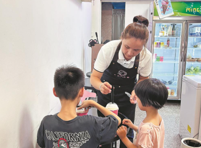 楊蔭寬為留守兒童送上親手制作的八仙奶茶。本報(bào)通訊員 吳杭藝 攝 東南網(wǎng)8月26日訊(福建日?qǐng)?bào)記者 李妙珠)近日,一家臺(tái)灣青年經(jīng)營(yíng)的詔安特色飲料店刷爆了當(dāng)?shù)厝说呐笥讶?,這家店名叫“臺(tái)灣茶歐蕾”,主理人是臺(tái)青楊蔭寬。 2017年,楊蔭寬來(lái)到大陸創(chuàng)業(yè),2020年嫁到漳州詔安?!皝?lái)到詔安,我覺(jué)得很親切,這里的語(yǔ)言、飲食、習(xí)俗和臺(tái)灣很相似?!睏钍a寬說(shuō)。 詔安的八仙茶和青梅是當(dāng)?shù)氐拿麅?yōu)特產(chǎn),臺(tái)灣茶飲也久負(fù)盛名。2022年,楊蔭寬決定結(jié)合臺(tái)灣奶茶的制作工藝,制作詔安的特色茶飲。 為了制作高品質(zhì)的茶飲,楊蔭寬不惜以成本較高的八仙茶做茶底,同時(shí),楊蔭寬不斷嘗試將八仙茶與詔安青梅、八仙茶與鮮奶等結(jié)合,通過(guò)冷泡技術(shù),研制符合年輕人口味的新茶飲。經(jīng)過(guò)不斷研制、調(diào)試,楊蔭寬推出的詔安特調(diào)系列茶飲深受消費(fèi)者喜愛(ài),成為當(dāng)?shù)氐闹放啤?/p> “老板,兩杯‘青梅竹馬’,少冰半糖!”近日,記者走進(jìn)“臺(tái)灣茶歐蕾”,楊蔭寬正忙著接訂單,為顧客制作“青梅竹馬”詔安特色青梅果茶、詔安八仙奶茶等茶飲。 “創(chuàng)新之路本來(lái)就是比較難的,如果只是開(kāi)一家普通的奶茶店,我完全可以去加盟品牌店。既然落地詔安,那我就要做出符合當(dāng)?shù)乜谖?、融合?dāng)?shù)厝宋牡脑t安特色茶飲?!睏钍a寬表示,茶飲也是農(nóng)產(chǎn)品推廣的手段之一,八仙茶和青梅制作成茶飲后消費(fèi)者的接受度更高,后續(xù)也會(huì)到外地開(kāi)店,讓詔安特色通過(guò)茶飲“走出去”。 2023年10月,詔安縣“兩岸青年驛站”在楊蔭寬的“臺(tái)灣茶歐蕾”揭牌成立。驛站主要致力于幫助臺(tái)灣青年了解大陸,為臺(tái)灣青年提供顧問(wèn)咨詢(xún)、法務(wù)咨詢(xún)、人力資源、投融資對(duì)接等交流服務(wù),從企業(yè)注冊(cè)、創(chuàng)業(yè)疑難、稅務(wù)政策等方面為臺(tái)青臺(tái)企答疑解惑,促進(jìn)兩岸青年共同逐夢(mèng)、共同成長(zhǎng)。 “詔安給了我們臺(tái)灣青年很大的發(fā)展空間,我希望把真實(shí)、立體的大陸告訴更多臺(tái)灣朋友,帶他們走出島內(nèi)的‘小確幸’,在大陸廣闊的舞臺(tái)勇敢地追夢(mèng)圓夢(mèng)。”楊蔭寬說(shuō)。 近日,楊蔭寬又多了一重身份——“愛(ài)心媽媽”。詔安首個(gè)女臺(tái)胞“愛(ài)心媽媽驛站”在“臺(tái)灣茶歐蕾”掛牌成立,將為留守兒童提供暖心關(guān)愛(ài),同時(shí)傳遞兩岸親情、傳播愛(ài)心事業(yè)。楊蔭寬說(shuō),她會(huì)繼續(xù)用實(shí)際行動(dòng)呼吁更多臺(tái)灣女性加入愛(ài)心媽媽隊(duì)伍,助力閩臺(tái)親情融合。 |