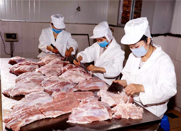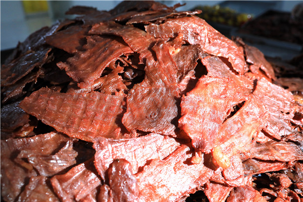 肉脯干實(shí)現(xiàn)規(guī)模化、標(biāo)準(zhǔn)化生產(chǎn)。江月蘭 攝 古法制作與新時(shí)代發(fā)生“碰撞”。為了更好地滿足受眾需要,羅顯光開始引進(jìn)項(xiàng)目,將現(xiàn)代裝備和傳統(tǒng)手工工藝有機(jī)結(jié)合起來(lái),不僅可以實(shí)現(xiàn)規(guī)?;?、標(biāo)準(zhǔn)化生產(chǎn),保證產(chǎn)品品質(zhì)穩(wěn)定,而且利用新型保鮮技術(shù)和包裝技術(shù),可以在大幅度延長(zhǎng)產(chǎn)品保質(zhì)期的同時(shí),保持肉脯干產(chǎn)品傳統(tǒng)風(fēng)味。產(chǎn)品保質(zhì)期的延長(zhǎng),有效促進(jìn)產(chǎn)品銷售渠道的擴(kuò)大。1992年羅顯光開始了工廠標(biāo)準(zhǔn)化生產(chǎn),當(dāng)年,榮興肉脯干的產(chǎn)值就達(dá)700多萬(wàn)元。 2019年,由于非洲豬瘟造成原料不足,豬肉價(jià)格暴漲,肉脯干由原來(lái)每斤80元猛漲到170元,限制了消費(fèi)人群。羅顯光及時(shí)調(diào)整策略,從源頭做起,配套養(yǎng)殖基地到產(chǎn)品深加工一條龍,形成產(chǎn)業(yè)化生產(chǎn),并豐富了產(chǎn)品系列。 時(shí)代賦予百年技藝新的挑戰(zhàn),現(xiàn)如今,羅顯光在思考如何讓榮興肉脯干走出去。