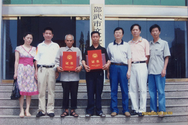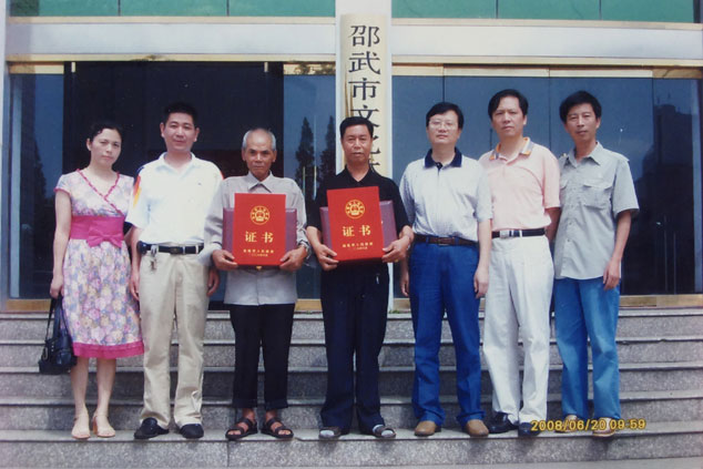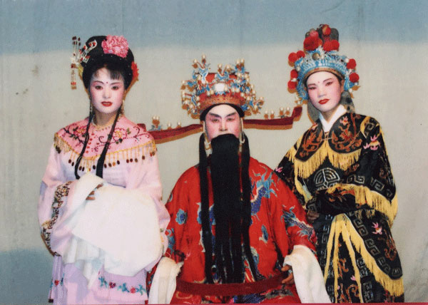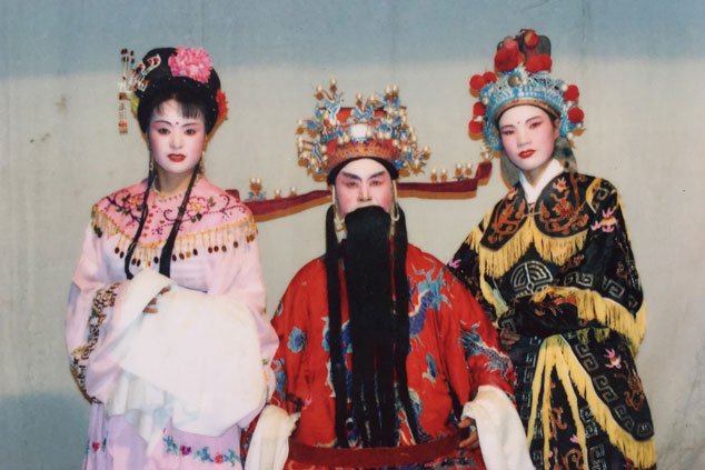 虞東生和徒弟合影。受訪者供圖 “之所以叫做三角戲,是因?yàn)樵戎挥猩?、旦、丑三個(gè)角色?!庇輺|生一邊搬出他的“寶貝”,一邊和記者解釋道:“它是由花鼓戲、黃梅戲、采茶戲、邵武民歌融匯演變而成,講的是老百姓的日常生活,主角們都是農(nóng)民、小商販、土財(cái)主之類,很受老百姓喜歡?!背錾?944年的虞東生,自小就與戲結(jié)緣,介紹起三角戲來(lái),更是如數(shù)家珍。 虞老說(shuō),他從小就是個(gè)“戲迷”,常常在戲臺(tái)旁邊看邊模仿。“10歲時(shí),我整天泡在村里的戲團(tuán)學(xué)戲?!庇輺|生回憶,“雖然年齡小,但是我記性好,學(xué)唱腔、動(dòng)作、樂(lè)器都比大人快。跟黃師傅學(xué)習(xí)1年后,我就能在排戲缺人的時(shí)候頂戲,有時(shí)候還教大人表演?!?/p> 1960年的一個(gè)晚上,虞東生到城里觀看越劇后,詢問(wèn)越團(tuán)負(fù)責(zé)人是否收人,得到的回答是“只要女的,不要男的”,難過(guò)和失落涌上心頭。當(dāng)時(shí),他便抱定決心一定要進(jìn)劇團(tuán)。 “沒(méi)過(guò)多久,我又找到三角劇團(tuán)團(tuán)長(zhǎng)黃敏杰。他說(shuō)進(jìn)劇團(tuán)要考,我學(xué)過(guò)戲當(dāng)然不怕考試!”下半年,虞東生便抱著父親買(mǎi)的二胡進(jìn)了邵武縣三角劇團(tuán)。 進(jìn)劇團(tuán)后,虞東生追隨羅雪官、付子卿、周老三等師父學(xué)習(xí)三角戲,以扮演老生為主,也客串些其他角色。由于對(duì)樂(lè)器的偏愛(ài),他利用業(yè)余時(shí)間向樂(lè)師學(xué)二胡、笛子、鑼、鈸、嗩吶等;每到一個(gè)地方演出,他還會(huì)向當(dāng)?shù)乩先嘶蚯拜呎?qǐng)教戲藝和曲譜,并把所學(xué)的樂(lè)譜都記下來(lái)。 獨(dú)奏一場(chǎng)戲 練“絕活”一心多用