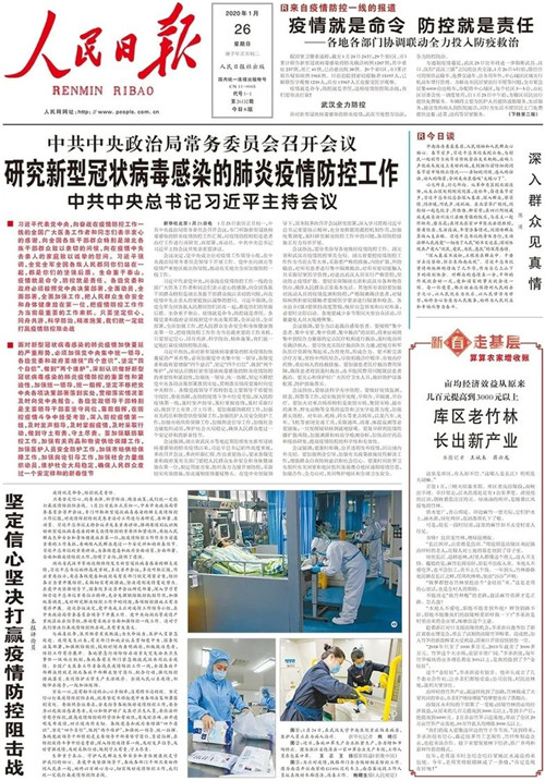 1月26日《人民日報》一版版面