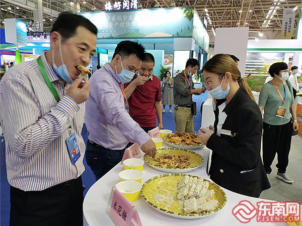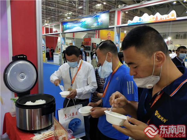 浦城大米制成的美食受到參觀者好評 東南網(wǎng)記者張立慶 攝 “金香穗”“好年東”“坡田”“玉女峰”等系列大米;優(yōu)質(zhì)富硅大米和“米硅素”系列產(chǎn)品;專用面粉、面線、通心粉、胚芽粉、興化米粉等系列產(chǎn)品。在福建綜合展示館里,展示了24家企業(yè)的地方名優(yōu)特糧油、特色雜糧、食品制品等。