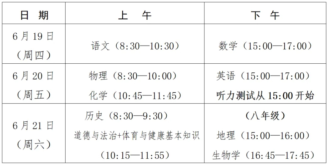 福建省教育考試院關(guān)于2025年中考省級(jí)統(tǒng)一考試科目和時(shí)間安排的通知