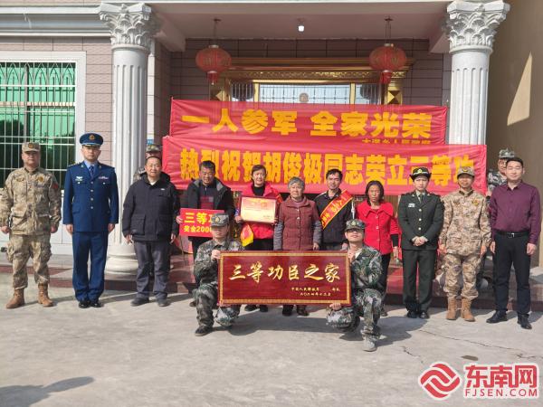 送喜報(bào) 東南網(wǎng)1月17日訊(通訊員 許彬彬 陳明明 文/圖)1月16日,莆田市涵江區(qū)大洋鄉(xiāng)杏山村洋溢著別樣的喜慶氛圍,一支由涵江區(qū)人武部、涵江區(qū)退役軍人事務(wù)局、空軍某部隊(duì)和大洋鄉(xiāng)退役軍人服務(wù)站組成的送喜報(bào)隊(duì)伍,前往榮立三等功的現(xiàn)役軍人胡俊極家中,送上立功喜報(bào),以及黨委、政府和部隊(duì)的溫暖與關(guān)懷。 伴隨著熱鬧的鑼鼓聲,送喜報(bào)隊(duì)伍高舉祝賀橫幅,手捧立功喜報(bào)和獎(jiǎng)勵(lì)金,步入家門?!澳膬鹤釉诓筷?duì)表現(xiàn)優(yōu)異,受到部隊(duì)嘉獎(jiǎng)了,他為家鄉(xiāng)爭了光,是咱們的驕傲!”工作人員滿臉笑容地向軍屬道賀。 軍屬們身披綬帶,接過喜報(bào),激動(dòng)之情溢于言表?!昂⒆釉诓筷?duì)立功了,這是全家的驕傲!當(dāng)初送孩子去部隊(duì),就是希望他為國家做點(diǎn)貢獻(xiàn),能有今天的成績,離不開黨和政府的關(guān)心,離不開部隊(duì)的培養(yǎng),我們會(huì)繼續(xù)鼓勵(lì)孩子不忘初心,再立新功,報(bào)效祖國?!痹捳Z間透著對(duì)遠(yuǎn)方親人深深的思念與無盡的欣慰。鄰里們也紛紛圍攏過來,投來羨慕的目光,大家你一言我一語,傳頌著軍人的英勇事跡,讓這小小的村落充滿了榮耀的氣息。 立功喜報(bào)的送達(dá),不僅溫暖了軍人家庭的心,更在涵江這片紅色熱土上播撒下愛國擁軍的種子,激勵(lì)著更多的有志青年投身軍旅,為保家衛(wèi)國貢獻(xiàn)力量,也讓全社會(huì)對(duì)軍人的尊崇之情愈發(fā)深厚。下一步,涵江區(qū)退役軍人事務(wù)局將繼續(xù)落實(shí)好擁軍優(yōu)屬各項(xiàng)政策,弘揚(yáng)擁軍優(yōu)屬、擁政愛民的光榮傳統(tǒng),進(jìn)一步增強(qiáng)軍人軍屬的榮譽(yù)感。 |