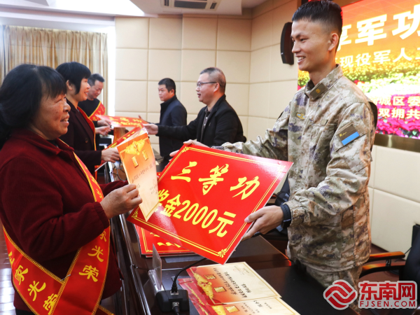 送喜報(bào) 東南網(wǎng)1月24日訊(通訊員 陳文華 文/圖)“光榮之家”喜事多,軍屬歡聚享榮光。1月23日,莆田市荔城區(qū)現(xiàn)役軍人立功喜報(bào)集中送達(dá)儀式在荔城區(qū)人武部舉行,軍屬們共享軍功,見證榮譽(yù),其樂融融。 期間,荔城區(qū)人武部政工科為11名立功受獎(jiǎng)軍屬宣讀喜報(bào),荔城區(qū)退役軍人事務(wù)局為軍屬佩戴“一人立功,全家光榮”綬帶,并頒發(fā)獎(jiǎng)金,感謝他們?yōu)椴筷?duì)、為國(guó)家培育出優(yōu)秀人才,為國(guó)防事業(yè)和軍隊(duì)建設(shè)給予大力支持。軍屬們滿滿的幸福感都寫在臉上,紛紛表示將一如既往支持軍人扎根軍營(yíng)、刻苦訓(xùn)練,為強(qiáng)軍夢(mèng)、強(qiáng)國(guó)夢(mèng)做出新的貢獻(xiàn)。 合照 一張張喜報(bào)是軍人矢志強(qiáng)軍、無私奉獻(xiàn)的光榮成績(jī)單,一枚枚沉甸甸的軍功章也有軍屬的一半。近年來,荔城區(qū)把為立功受獎(jiǎng)軍人家庭送喜報(bào)活動(dòng)作為擁軍優(yōu)屬的一項(xiàng)重點(diǎn)工作,用情用力落實(shí)擁軍優(yōu)屬政策,強(qiáng)化服務(wù)意識(shí)、當(dāng)好軍人后盾。今年以來,該區(qū)共送達(dá)二等功、三等功、“四有”優(yōu)秀士兵喜報(bào)60份,廣大群眾與軍屬分享著“一人參軍,全家光榮;一人立功,全村光榮”的新春喜悅,增強(qiáng)軍人軍屬的榮譽(yù)感和自豪感,大力營(yíng)造崇軍擁軍的良好社會(huì)氛圍。 |