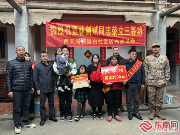 宣讀立功喜報 東南網(wǎng)1月24日訊(通訊員 劉曉頏 文/圖)歲末年初,喜報頻頻。近日,莆田市荔城區(qū)西天尾鎮(zhèn)退役軍人服務(wù)站會同相關(guān)部門組織開展送喜報活動,為轄區(qū)內(nèi)立功的現(xiàn)役軍人家庭上門送去立功喜報及慰問金,讓軍屬共享喜悅榮光,營造尊崇軍人軍屬的濃厚社會氛圍。 鑼聲鏗鏘,鼓音震天。隨著車鼓隊的鑼鼓聲,荔城區(qū)退役軍人事務(wù)局、西天尾鎮(zhèn)武裝部、西天尾鎮(zhèn)退役軍人服務(wù)站聯(lián)合村(社區(qū))上門為榮立三等功的現(xiàn)役軍人顧佳亮、許駿焱和林劍斌送去立功喜報。 喜報送到家 橫幅飄揚,鄰里恭賀。軍屬們身披紅色綬帶,臉上洋溢著自豪與喜悅。慰問人員親手將立功喜報和慰問金遞交給軍屬,并向他們表示誠摯的感謝與崇高的敬意?,F(xiàn)場掌聲雷動,共同見證這一榮耀時刻,展現(xiàn)社會對軍人及其家庭的深厚情感與尊重。 西天尾鎮(zhèn)退役軍人服務(wù)站站長許永光表示,該鎮(zhèn)會繼續(xù)關(guān)注現(xiàn)役軍人的家庭情況,積極為他們提供支持和幫助,繼續(xù)開展各種形式的慰問活動,讓軍人和軍人家屬感受到政府的溫暖和關(guān)懷。 喜報送到家 一張立功喜報,既是一份榮譽、一份責任,也是一份溫暖、一份關(guān)愛。下階段,西天尾鎮(zhèn)將結(jié)合2025年征兵工作,扎實落實各項擁軍優(yōu)屬政策,把向立功受獎軍人及其家屬送喜報作為擁軍優(yōu)屬和激勵適齡青年參軍入伍宣傳融合推進的一項重要內(nèi)容,讓政治榮譽變成看得見、摸得著的社會正能量,讓軍人成為全社會尊崇的職業(yè),進一步激勵官兵扎根軍營、獻身強軍事業(yè)。 |