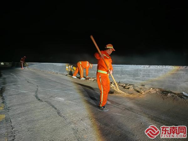 事故現(xiàn)場 東南網(wǎng)2月14日訊(通訊員 巫雨玨 吳澤平)"?!?quot;2月13日晚10時30分許,急促的電話鈴聲劃破夜幕,寧化公路分中心接中沙派出所報警電話稱S221線沙坪白水寨(69K+600)路段發(fā)生交通事故,路面污染撒漏,請派員清理。 該路段為長下坡、急彎路段,又恰逢春運期間,為避免次生災害發(fā)生,保證專養(yǎng)公路安全暢通,分中心當即指令河龍公路站值守人員趕往現(xiàn)場應急處置。 公路站值守人員趕往現(xiàn)場應急處置 23時51分,隨著消防應急隊員及醫(yī)護人員將受困司機成功救出,早已嚴陣以待的河龍班站養(yǎng)護工人們開始清障工作,他們在事發(fā)路段兩端擺設好錐形警告標志,規(guī)范安全布控,協(xié)同交警做好臨時交通管制。寒夜里,養(yǎng)護工們化身"公路外科醫(yī)生",借助應急頭燈清理路面撒落木塊,用木屑覆蓋污染路面的機油,鏟運清理,凌晨2時36分,該路段雙向車道恢復正常通行。 |