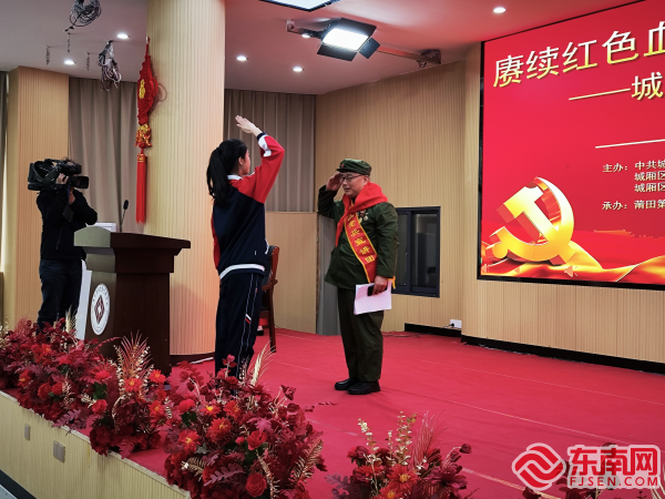 活動(dòng)現(xiàn)場(chǎng) 東南網(wǎng)4月1日訊(通訊員 陳治中 文/圖)近日,莆田第五中學(xué)附屬學(xué)校禮堂內(nèi)氣氛熱烈,一場(chǎng)以“聆聽(tīng)紅色故事,傳承革命薪火”為主題的宣講活動(dòng)在此舉行,旨在傳承紅色基因,弘揚(yáng)愛(ài)國(guó)主義精神,引導(dǎo)青少年銘記歷史、厚植家國(guó)情懷。 活動(dòng)在莊嚴(yán)的氛圍中拉開(kāi)帷幕,學(xué)生代表為越戰(zhàn)老兵林文炳系上鮮艷的紅領(lǐng)巾,全體人員起立奏唱中華人民共和國(guó)國(guó)歌。隨后,越戰(zhàn)老兵林文炳走上講臺(tái),深情講述其參戰(zhàn)經(jīng)歷。 學(xué)生代表為越戰(zhàn)老兵林文炳系上鮮艷的紅領(lǐng)巾 那些戰(zhàn)火紛飛的歲月、英勇戰(zhàn)斗的故事,讓現(xiàn)場(chǎng)師生仿佛置身于那段波瀾壯闊的歷史中。林文炳用親身經(jīng)歷傳遞著愛(ài)國(guó)主義思想,他的講述感染著每一位聽(tīng)眾,讓大家深刻體會(huì)到今天的和平生活來(lái)之不易。 最后,全體人員共同奏唱《沒(méi)有共產(chǎn)黨就沒(méi)有新中國(guó)》,激昂的歌聲在禮堂內(nèi)回蕩,將活動(dòng)的氛圍推向高潮。此次活動(dòng)不僅讓學(xué)生們聆聽(tīng)真實(shí)的紅色故事,更在學(xué)生們心中種下艱苦奮斗、勇于擔(dān)當(dāng)?shù)木穹N子。 下一步,城廂區(qū)將持續(xù)深化“老兵宣講進(jìn)校園”活動(dòng)成果,不斷拓展活動(dòng)的廣度和深度,豐富宣講形式,提供更加多元化、專(zhuān)業(yè)化的宣講內(nèi)容,讓紅色教育融入日常,營(yíng)造全社會(huì)崇尚英雄、學(xué)習(xí)英雄的濃厚氛圍。 |