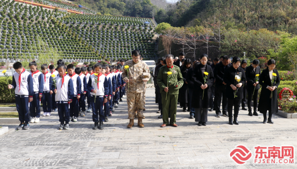 鞠躬默哀 東南網(wǎng)4月3日訊(通訊員 陳文華 文/圖)清明時(shí)節(jié)祭忠魂,英烈精神勵(lì)后人。4月2日,由莆田市荔城區(qū)新時(shí)代文明實(shí)踐中心、區(qū)委文明辦、區(qū)教育局、區(qū)退役軍人事務(wù)局、共青團(tuán)荔城區(qū)委、區(qū)人武部政工科主辦的荔城區(qū)“賡續(xù)?2025?百園千校清明祭英烈”活動(dòng)在荔城區(qū)烈士陵園舉行,深切緬懷革命先烈的豐功偉績(jī)。 位于莆田二十四景之一“壺山致雨”山麓的烈士陵園,蒼松翠柏,青山環(huán)抱,“人民英雄永垂不朽”八個(gè)大字燙金大字格外醒目。全體人員齊聚在烈士墓碑前,緬懷為民族獨(dú)立和人民解放事業(yè)英勇獻(xiàn)身的革命先烈。 上午9時(shí),祭英烈儀式正式開始,全體人員整齊列隊(duì),莊嚴(yán)肅立,奏唱中華人民共和國(guó)國(guó)歌,向烈士鞠躬默哀,銘記歷史,追憶先烈們的不朽功勛;少先隊(duì)員獻(xiàn)唱《我們是共產(chǎn)主義接班人》。隨后,全體人員手持鮮花緩慢走到烈士墓前瞻仰革命先烈,敬獻(xiàn)鮮花,寄托哀思。 敬獻(xiàn)鮮花 活動(dòng)現(xiàn)場(chǎng),大家還抒寫感言寄語(yǔ)卡片,面對(duì)面聆聽參戰(zhàn)老兵講述英烈故事,勉勵(lì)廣大青少年向英雄人物學(xué)習(xí),爭(zhēng)做新時(shí)代好少年,報(bào)效祖國(guó)。 “今天來(lái)參加祭掃活動(dòng),心潮澎湃。我們要銘記先烈遺志,珍惜現(xiàn)在的和平生活,好好學(xué)習(xí),將來(lái)為祖國(guó)發(fā)展貢獻(xiàn)力量?!贝筵嘈W(xué)學(xué)生蔡佳靈動(dòng)情地說(shuō)。 據(jù)介紹,清明節(jié)期間,荔城區(qū)將繼續(xù)組織中小學(xué)生赴烈士陵園參加“擦拭一遍墓碑、敬獻(xiàn)一束鮮花、進(jìn)行一次描金描紅、重溫入團(tuán)(入隊(duì))誓詞、寫一張寄語(yǔ)卡片、品讀紅色經(jīng)典、講述英烈故事”等思政教育活動(dòng),緬懷英烈、致敬英烈,引導(dǎo)青少年學(xué)生扣好人生的第一??圩樱ぐl(fā)青少年學(xué)生“強(qiáng)國(guó)復(fù)興有我”的使命擔(dān)當(dāng),努力成長(zhǎng)為擔(dān)當(dāng)民族復(fù)興大任的時(shí)代新人。此外,“賡續(xù)·2025·清明祭英烈”云端獻(xiàn)花寄哀思活動(dòng)同步啟動(dòng),通過(guò)向先烈鞠躬、為先烈送花、簽名寄語(yǔ)等方式,寄托哀思,表達(dá)對(duì)英烈的深切緬懷和無(wú)限敬意,銘記英烈志,傳承紅色魂。 |