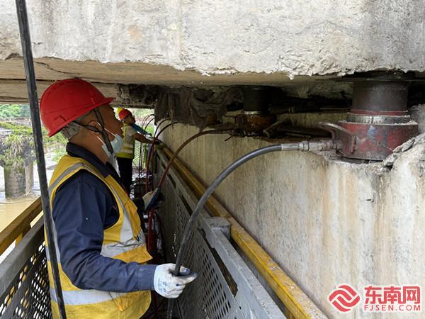 三明市公路中心橋梁養(yǎng)護(hù)技術(shù)人員化身“橋梁醫(yī)生”換支座。 東南網(wǎng)5月14日訊(通訊員 巫海明 徐曉瑩)5月8日,在將樂縣伍宿口橋上,三明市公路中心橋梁養(yǎng)護(hù)技術(shù)人員化身“橋梁醫(yī)生”,對5座橋梁的353個(gè)“病癥”支座集中更換。 作為橋梁結(jié)構(gòu)中的關(guān)鍵部件,支座架設(shè)在墩臺(tái)上,承擔(dān)著“承上啟下”的重要作用。它不僅將橋梁上部結(jié)構(gòu)的全部荷載傳遞至下部結(jié)構(gòu),更對保障橋梁整體穩(wěn)定和運(yùn)營安全具有決定性影響。