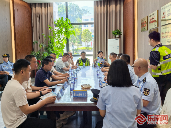 啟動(dòng)儀式。寧德高速執(zhí)法支隊(duì)供圖 當(dāng)天上午,該支隊(duì)參加寧德市“路政宣傳月”暨國(guó)省道沿線“迎國(guó)評(píng)路域環(huán)境整治專項(xiàng)行動(dòng)”啟動(dòng)儀式,與公路運(yùn)輸事業(yè)中心、交通運(yùn)輸執(zhí)法支隊(duì)等單位共同拉開(kāi)活動(dòng)序幕。啟動(dòng)儀式后,執(zhí)法人員立即投入一線服務(wù),受邀與當(dāng)?shù)?家運(yùn)輸企業(yè)開(kāi)展專題座談,圍繞超限治理、運(yùn)輸通行許可等企業(yè)關(guān)切問(wèn)題深入交流,聽(tīng)取關(guān)于執(zhí)法服務(wù)、政策落地等方面的意見(jiàn)建議,并針對(duì)企業(yè)提出的運(yùn)輸難點(diǎn)現(xiàn)場(chǎng)制定幫扶方案,推動(dòng)執(zhí)法服務(wù)精準(zhǔn)對(duì)接發(fā)展需求。