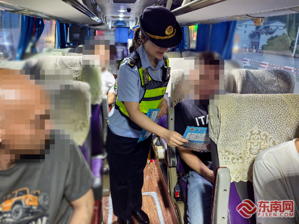 民法典普法宣傳。寧德高速執(zhí)法支隊供圖 行動前,大隊結(jié)合轄區(qū)車流特點精密部署,調(diào)配10名執(zhí)法人員、出動4臺執(zhí)法車輛,采取“定點檢查+動態(tài)巡查”模式,對過往車輛進行全覆蓋排查。執(zhí)法人員嚴格核查客運班線車輛線路牌、旅游包車合同、危化品運輸押運資質(zhì)及貨運車輛裝載情況,同步檢查車輛營運資質(zhì)、駕駛員從業(yè)資格,累計檢查各類車輛30輛次。