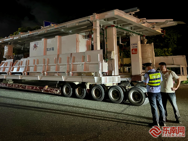查獲超限運(yùn)輸車輛。寧德高速執(zhí)法支隊(duì)供圖 經(jīng)核查,7輛重型貨運(yùn)車輛均已辦理超限運(yùn)輸車輛通行證,但是車輛實(shí)際行駛路線與審批許可的路線不相符,涉嫌擅自改變運(yùn)輸路線,存在道路安全隱患。執(zhí)法員引導(dǎo)該車輛至指定區(qū)域進(jìn)行進(jìn)一步調(diào)查。
