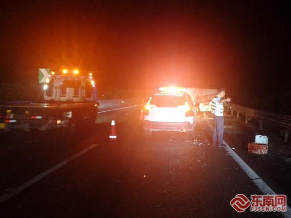 東南網(wǎng)7月10日訊(通訊員 林小勇)7月7日凌晨1時(shí)17分,寧上高速A道7K+0M處發(fā)生一起小型貨車碰撞護(hù)欄事故,車輛滯留應(yīng)急車道并造成路產(chǎn)損失。賽岐中隊(duì)執(zhí)法人員接警后迅速啟動(dòng)應(yīng)急預(yù)案,20分鐘內(nèi)抵達(dá)現(xiàn)場,規(guī)范設(shè)置反光錐桶及警示標(biāo)志,引導(dǎo)車流有序避讓,嚴(yán)防二次事故發(fā)生。