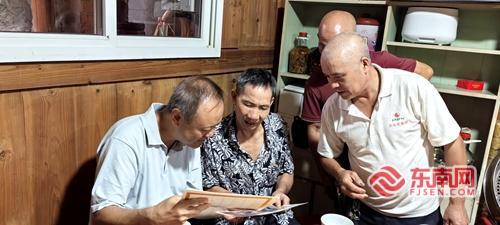 葉元堅(jiān)(左一)與盧家人對(duì)話 尚李珍 攝 在父親葉新華的描述中,寶珠山自古就是商貿(mào)重鎮(zhèn)、人才輩出,有著“文寶珠”的美譽(yù)。然而遺憾的是,2016年,葉新華先生在波士頓溘然長(zhǎng)逝,終其一生再也未能重回南平寶珠這片翠色縈繞的故土。在整理父親遺物時(shí),葉元堅(jiān)看到家鄉(xiāng)“寶珠山”、委托“立碑”、父親“日崇”、前輩摯友“盧世鈐”等字眼——這些散落的詞句,如模糊的線索,隱約拼湊出一段四十多年前的往事舊影?!爸挥谢氐街袊?guó),才能找到答案?!彼@樣想。 今年8月上旬,葉元堅(jiān)收拾行囊,從波士頓啟程飛抵上海。在朋友的幫助下,他聯(lián)系上南平市僑聯(lián),請(qǐng)對(duì)方協(xié)助尋訪祖籍地。盡管所能提供的信息極為有限——僅有父輩與祖輩的姓名,市僑聯(lián)仍高度重視,并將委托延平區(qū)僑聯(lián)具體協(xié)助。區(qū)僑聯(lián)主席卓清親自負(fù)責(zé),通過(guò)一位在寶珠山經(jīng)營(yíng)民宿的朋友,聯(lián)系上當(dāng)?shù)氐娜~氏宗親。經(jīng)多方打聽、反復(fù)核實(shí),終于確認(rèn):葉元堅(jiān)正是他們失聯(lián)多年、遠(yuǎn)在海外的同族后人。 突然得知遠(yuǎn)在海外的親人要回鄉(xiāng)謁祖,葉氏宗親們非常激動(dòng)和興奮,提前三天就通知在各處定居的族親返回寶珠村,共同迎接這場(chǎng)跨越半個(gè)世紀(jì)、半個(gè)地球的“重逢”。