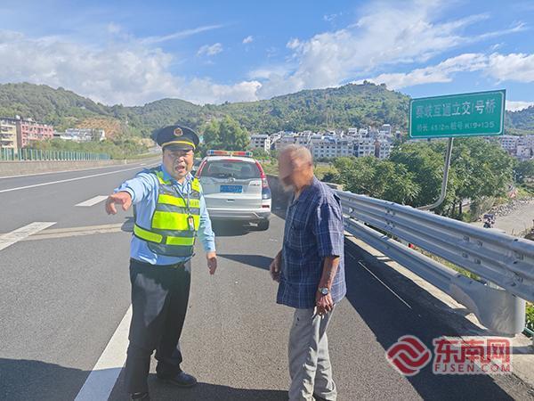 發(fā)現(xiàn)被困老人。寧德高速執(zhí)法支隊供圖 執(zhí)法隊員立即靠邊停車并開啟警笛示警,快速將老人安全轉(zhuǎn)移至緊急停車帶。面對受驚的老人,隊員們一邊輕聲安撫其情緒,一邊耐心詢問家庭信息。經(jīng)了解,老人因年事已高、記憶力衰退,不慎誤入高速后迷失方向,只能沿著護欄摸索前行,不知不覺越走越遠。