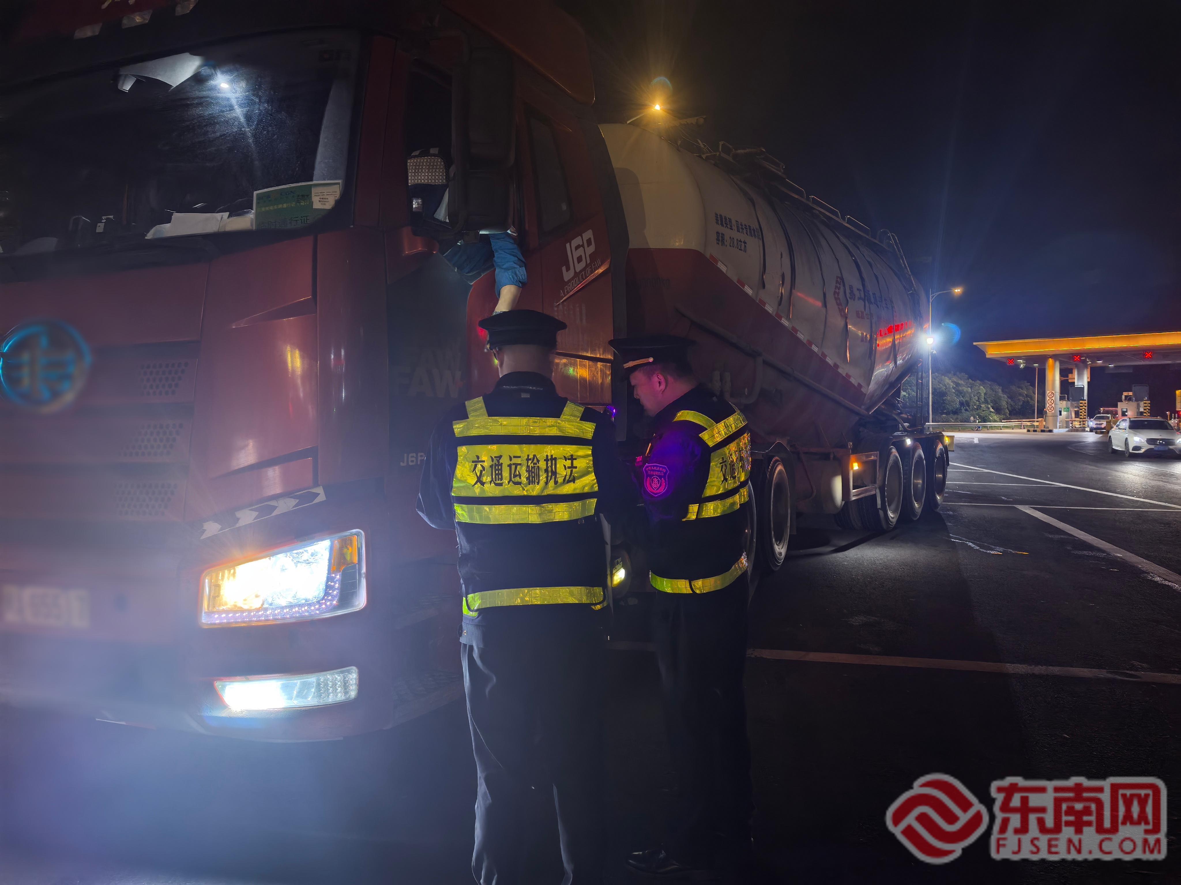 執(zhí)法檢查。寧德高速執(zhí)法支隊(duì)供圖 行動(dòng)期間,霞浦中隊(duì)以牙城、鹽田、霞浦等車流量較大的收費(fèi)站為關(guān)鍵節(jié)點(diǎn),科學(xué)調(diào)配執(zhí)法力量,優(yōu)化檢查方案。為確保執(zhí)法覆蓋面與威懾力,中隊(duì)采用了“白+黑”勤務(wù)模式,在日間常態(tài)化檢查的基礎(chǔ)上,重點(diǎn)強(qiáng)化了夜間和凌晨時(shí)段的巡查頻次與力度,實(shí)現(xiàn)了對重點(diǎn)路段、重點(diǎn)時(shí)段運(yùn)輸行為的有效監(jiān)管。