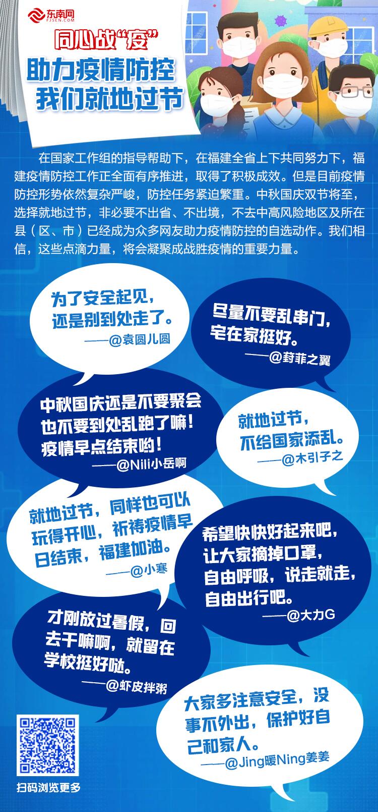 中秋、國慶假期將至。針對當(dāng)前疫情形勢,福建官方倡議民眾就地過節(jié),減少出行,共同筑起聯(lián)防聯(lián)控、群防群控的堅(jiān)固防線。 本次疫情發(fā)生以來,福建正爭分奪秒開展核酸檢測、流調(diào)溯源、隔離管控、醫(yī)療救治等工作。助力福建,抗疫有我!就公民個(gè)體而言,就地過節(jié)的確使部分人失去了與家人團(tuán)聚的機(jī)會(huì),但從疫情防控大局來看,我們的每分理解與積極配合,都是在以力所能及的方式助力防控。數(shù)字化時(shí)代,即便在不同城市,我們依舊能通過互聯(lián)網(wǎng)與家人舉杯共飲、“隔空”賞月,用互發(fā)信息、短視頻、電子賀卡等方式傳遞佳節(jié)祝福。隔離的是疫情,不變的是真情,“線上團(tuán)圓”一樣有滋有味。 學(xué)校、企事業(yè)單位是疫情防控的重要主體,也是推進(jìn)就地過節(jié)的最后一公里。自9月10日以來,本輪疫情新增本土確診病例場所聚集性感染明顯,這就要求各級地方政府和相關(guān)單位做好摸底排查、健康管理、服務(wù)保障等工作。防疫是一項(xiàng)系統(tǒng)工程,需下足“繡花”功夫,把每一個(gè)細(xì)節(jié)都考慮清楚,將每一個(gè)步驟都落實(shí)到位。此外,學(xué)校與相關(guān)單位可以采取發(fā)放月餅、節(jié)日補(bǔ)貼,組織線上“博餅”、猜謎等活動(dòng)增添節(jié)日氣氛。多一份暖心關(guān)懷,多一些人性化舉措,讓異地過節(jié)者感受到第二家鄉(xiāng)的溫馨。 就地過節(jié)期間,省內(nèi)低風(fēng)險(xiǎn)地區(qū)在符合疫情防控的要求下,為群眾提供文旅服務(wù)時(shí),需強(qiáng)化景區(qū)、公共文化服務(wù)場所的管控,嚴(yán)格落實(shí)“限量、預(yù)約、錯(cuò)峰”要求,科學(xué)動(dòng)態(tài)調(diào)整防控策略和措施;電影院、健身館、KTV等室內(nèi)營業(yè)場所需做好衛(wèi)生和環(huán)境消殺。中高風(fēng)險(xiǎn)地區(qū)文旅服務(wù)場所應(yīng)根據(jù)當(dāng)?shù)匾咔榉揽刂笓]部的統(tǒng)一要求暫停對外開放。 疫情防控是一場全民戰(zhàn)爭,需要每個(gè)人及各地各部門的多方配合、通力協(xié)作,唯有齊心協(xié)力才能筑牢安全防線、贏得最終勝利,使城市恢復(fù)往日的生機(jī)。(林瑤) |