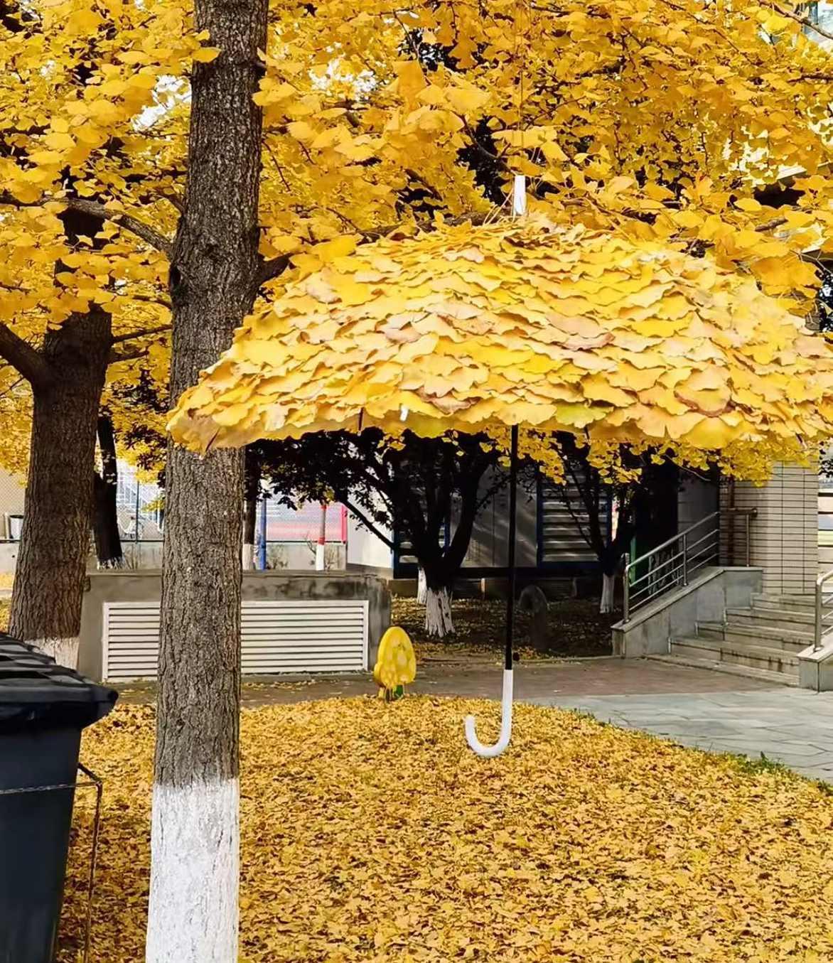 大連外國語大學(xué)校園里的“銀杏傘”。圖源小紅書用戶@一天中我清醒三次