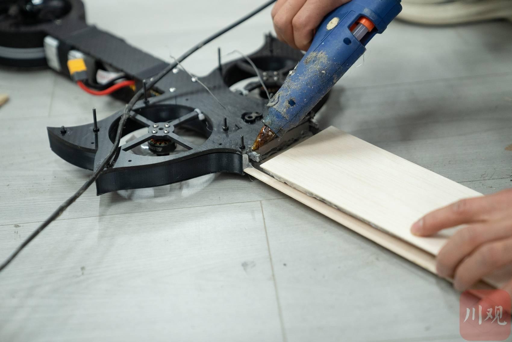 范十三團(tuán)隊(duì)組裝劍形飛行器。圖片來源:四川在線