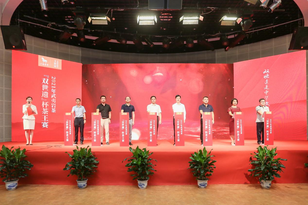 之后,由武夷山市政協(xié)黨組書記陳先珍、武夷山市政府副市長范震昆、武夷山市茶產(chǎn)業(yè)發(fā)展中心主任王曉軍、武夷山市招商服務中心何梅芳、武夷山市場監(jiān)督管理局副局長葉福開、武夷山市稅務局副局長李立新、武夷山市茶業(yè)同業(yè)公會會長劉國英、八馬茶業(yè)總經(jīng)理吳清標的共同見證下,2021年武夷巖茶“雙世遺”杯茶王賽正式啟動。