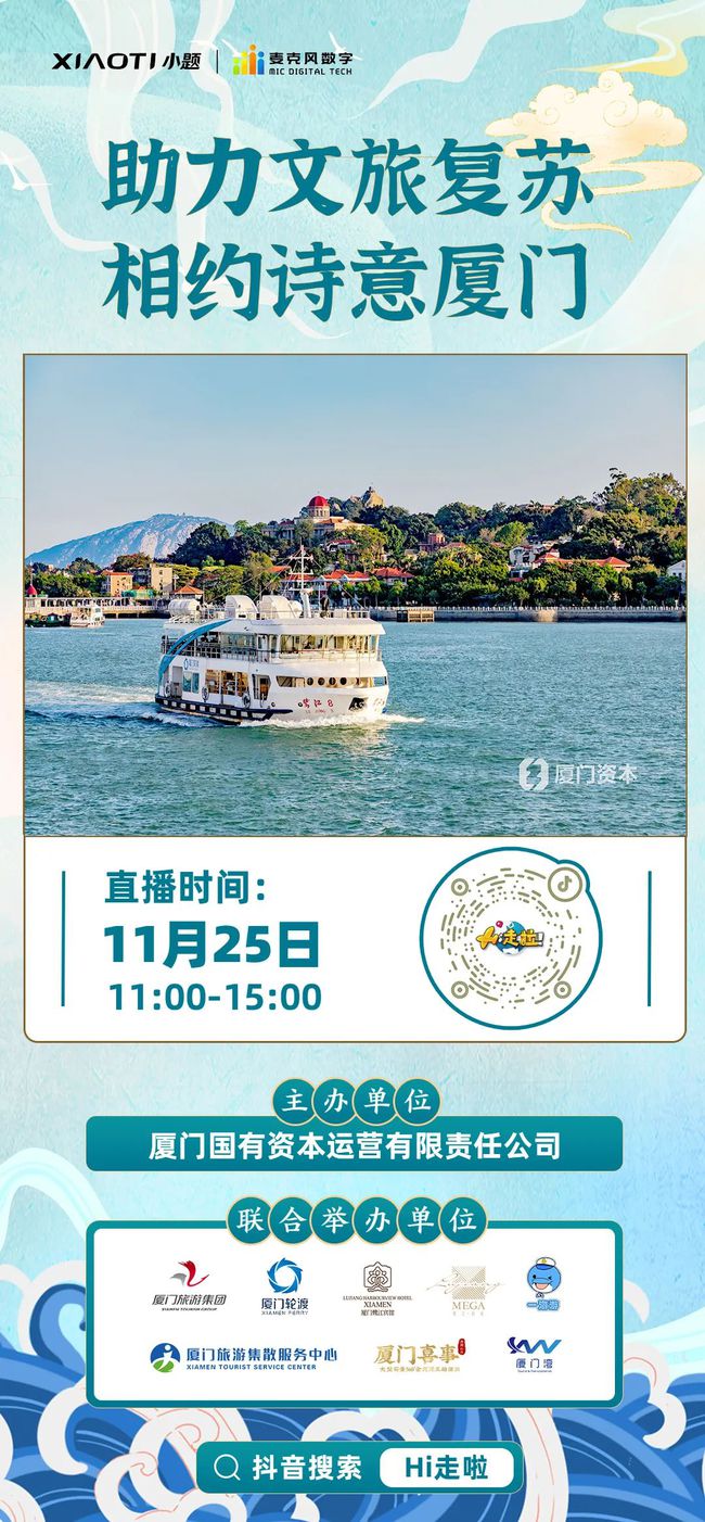 助力文旅復(fù)蘇,相約詩(shī)意廈門(mén),助力廈門(mén)文旅復(fù)蘇,推介廈門(mén)本土品牌,廈門(mén)國(guó)有資本運(yùn)營(yíng)有限公司聯(lián)合旗下廈門(mén)旅游集團(tuán)、廈門(mén)輪渡廈門(mén)鷺江賓館、廈門(mén)灣等于今日11:00-15:00在抖音舉辦廈門(mén)旅游專場(chǎng)直播。 ![]() 國(guó)有資本運(yùn)營(yíng)公司作為廈門(mén)旅游全要素集成者,旗下匯聚了碼頭、海上客運(yùn)、海上旅游、臨港商業(yè)、品牌酒店、集散中心、智慧平臺(tái)等旅游全部業(yè)態(tài),直播現(xiàn)場(chǎng)連線資本運(yùn)營(yíng)公司旗下子公司,介紹具有廈門(mén)特色的旅游產(chǎn)品。 ![]() ![]() 起源于鷺江賓館的鷺江·佲家在這次直播中為大家?guī)?lái)四人套餐、雙人套餐、佲家池畔浪漫下午茶周末套餐等優(yōu)惠團(tuán)購(gòu),還有更多精彩文旅好物在直播間等你! ![]() A萌君還了解到中國(guó)首部以華僑家國(guó)情懷為主題,以廈門(mén)文化為核心的大型實(shí)景360°全沉浸互動(dòng)演出《廈門(mén)喜事》計(jì)劃將于2022年春季在廈門(mén)國(guó)際郵輪中心廈鼓碼頭亮相,觀眾將換上精美華服與才貌雙絕的演員近身互動(dòng),感受百年廈門(mén)時(shí)光,享受視聽(tīng)盛宴敬請(qǐng)期待哦~ |