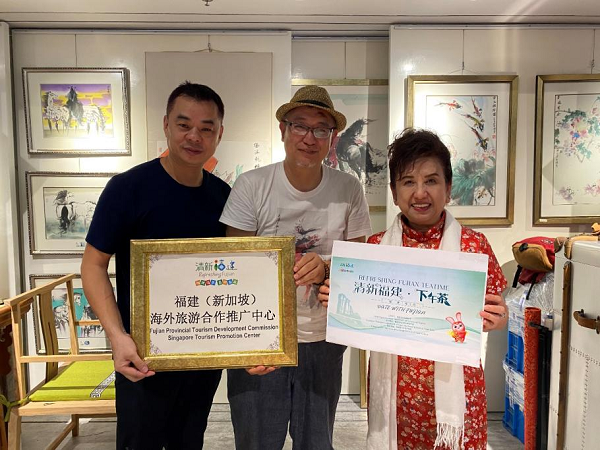 東南網(wǎng)1月21日訊 2023年1月20日,福建文化海外驛站·新加坡站在當?shù)貏诿鬟_街舉辦“清新福建下午茶·福建有約”活動,現(xiàn)場氛圍一派歡樂喜慶。 “清新福建下午茶”活動主視覺 本次活動邀請了中國實力派畫家張智棟老師出席,與會嘉賓在張老師的指導(dǎo)下躍躍欲試,紛紛潑墨揮筆寫下喜慶的“?!弊帧!案!弊殖休d著他們對福建人民的美好祝愿,也表達了對新的一年美好期望。 嘉賓在活動現(xiàn)場手持“福”字合影 張智棟老師現(xiàn)場創(chuàng)作中國傳統(tǒng)彩墨畫,嫻熟運用濃墨、淡墨、干墨、濕墨與焦墨等傳統(tǒng)彩墨繪畫技巧,讓筆下的幾匹駿馬活靈活現(xiàn)。他借畫的美好寓意祝福大家在新的一年里一馬當先、馬到成功! 畫家張智棟現(xiàn)場作畫 活動現(xiàn)場還展播了《福建見?!贰陡=ㄈ昼姟泛汀扒逍赂=ā蔽穆枚唐屧趫黾钨e了解福建的悠久歷史和風(fēng)土人情。在觀賞完宣傳短片后,驛站工作人員圖文并茂介紹了福建的名勝古跡,如古代橋梁建筑杰作安平橋、獨具韻味的高北土樓群與擁有著秀麗山林景觀和復(fù)雜獨特喀斯特地貌的龍巖龍硿洞等。 現(xiàn)場展播福建文旅短片 本次活動還邀請了中國高級茶藝師汪勇向大家詳細講解品茗步驟,并介紹了來自福建不同品種的茶葉及其功效?,F(xiàn)場嘉賓們細細品嘗了產(chǎn)自福建的各式各樣茶葉,還互相交流品茶心得。 嘉賓們現(xiàn)場品茗福建茶葉 福建文化海外驛站·新加坡站負責(zé)人林璒利與嘉賓合影 “清新福建下午茶”活動是由福建省文化和旅游廳組織各福建文化海外驛站策劃打造的品牌活動,旨在以茶為媒,讓海外友人親身體驗福建民俗、非遺、文化等獨特的文旅資源,增進海外民眾對福建的了解,共享“各美其美、美人之美、美美與共、天下大同”的中國文化理念。福建文化海外驛站·新加坡站負責(zé)人林璒利表示,很高興通過“清新福建下午茶·福建有約”活動廣交朋友,讓更多新加坡人了解感受福建物產(chǎn)之美,同時也期盼通過活動促進福建和新加坡在多領(lǐng)域的深入交流合作。 |
