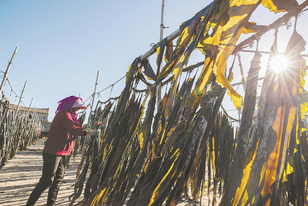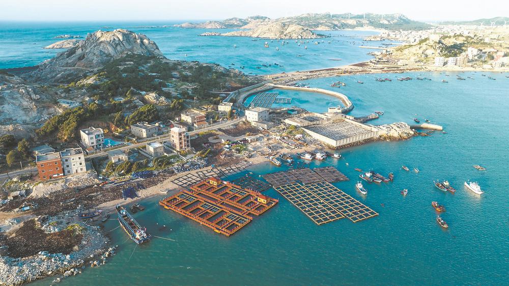 東岱灣海上牧場(chǎng)。 這片海洋牧場(chǎng),是通過(guò)人工魚(yú)礁、增殖放流等措施,實(shí)現(xiàn)漁業(yè)資源可持續(xù)利用的人工漁場(chǎng)。 2018年底,南日島海域獲批成為我省首家國(guó)家級(jí)海洋牧場(chǎng)示范區(qū)。在7.24平方公里的海域上,南日島投放了約7.39萬(wàn)立方米礁體構(gòu)件,建設(shè)人工魚(yú)礁。 “以人工礁體為框架的海洋牧場(chǎng)有獨(dú)特的生態(tài)系統(tǒng),正默默守護(hù)海洋生態(tài)?!绷种竞檎f(shuō)道,每一個(gè)構(gòu)件單元就是一個(gè)迷你的海洋世界,可以保護(hù)增殖魚(yú)類(lèi),修復(fù)局部生態(tài),改善水質(zhì)生態(tài),阻止海底拖網(wǎng)作業(yè)。 給海底生物“安新家”后,南日島在“牧場(chǎng)”中持續(xù)開(kāi)展底播增殖放流,不斷豐富海洋生物多樣性。 “近3年,我們公司放流了魚(yú)、蝦、貝等3億多尾(粒)?!痹谀先諐u云萬(wàn)村,福建省南日島海洋生物技術(shù)有限公司總經(jīng)理陳珍賜告訴記者,公司被農(nóng)業(yè)農(nóng)村部確認(rèn)為珍稀瀕危水生動(dòng)物——雙線紫蛤的增殖放流苗種供應(yīng)單位。 雙線紫蛤是一種名貴的底棲雙殼貝類(lèi),是福建省省級(jí)重點(diǎn)保護(hù)水生野生動(dòng)物。由于過(guò)度捕撈,雙線紫蛤資源日益枯竭,南日島海域是目前我國(guó)雙線紫蛤野生資源唯一生存的海域。 近年來(lái),南日島共放流雙線紫蛤320萬(wàn)粒。 南日島加快海上養(yǎng)殖轉(zhuǎn)型升級(jí)。2022年,全鎮(zhèn)18236口傳統(tǒng)養(yǎng)殖漁排,全部升級(jí)為環(huán)保型塑膠養(yǎng)殖漁排或深水大網(wǎng)箱;近5萬(wàn)畝傳統(tǒng)泡沫浮球,升級(jí)為環(huán)保型塑膠浮球,減少海漂垃圾,改善生態(tài)環(huán)境。 海島山體、沙灘、植被等多種類(lèi)型的整治修復(fù),水土流失治理,岸灘環(huán)境綜合整治,海岸災(zāi)害防護(hù)與生態(tài)修復(fù),海洋生態(tài)監(jiān)測(cè)預(yù)警和防災(zāi)減災(zāi)能力建設(shè)……南日島逐一開(kāi)展海島“療傷”、岸線修復(fù)工作,正加快補(bǔ)齊生態(tài)短板。 好生態(tài)也慷慨地給予當(dāng)?shù)厝罕姼囵佡?zèng)——2022年,全鎮(zhèn)漁業(yè)產(chǎn)量達(dá)23.38萬(wàn)噸,產(chǎn)值約53億元,比2012年產(chǎn)值增長(zhǎng)超200%。 “接二連三” 追求漁業(yè)更“優(yōu)” 南日鎮(zhèn)萬(wàn)峰村,一片海灘上竹竿林立,掛曬的墨色海帶在風(fēng)中搖晃,被夕陽(yáng)逆光打出“五彩斑斕的黑”。 海帶養(yǎng)殖戶魏桂林整理著海帶,臉上露出笑容,“以往是在沙灘上放置網(wǎng)布,直接將海帶鋪在上面曬,今年試著掛曬,效果不錯(cuò)”。 不遠(yuǎn)處的沙灘還有傳統(tǒng)“沙曬”場(chǎng)。女工們正在逐條翻動(dòng)海帶,抖落沙子再捋直?!皰鞎癖容^節(jié)省人工,只需掛上去,干了再收下來(lái)。”說(shuō)起今年的嘗試,魏桂林覺(jué)得滿意,“一樣大的曬場(chǎng)能夠掛更多的海帶,能節(jié)省1/3的用地?!?/p> 最重要的是,掛曬的干海帶含沙量少,品質(zhì)更好,價(jià)格也更高。魏桂林決定:“明年全部掛曬?!?/p> 這正是南日鎮(zhèn)政府引導(dǎo)的方向。林志洪表示,為避免因晾曬流失海沙,涵養(yǎng)沙灘,明年起將全面喊?!吧硶瘛?。 靠天吃飯,成本最低,價(jià)值也最低。為減少天氣對(duì)原材料的影響,徹底改變干海帶深加工時(shí)沙子難除盡的問(wèn)題,南日島上出現(xiàn)了4家大型海帶養(yǎng)殖加工廠,采用鹽漬海帶工藝,改變海帶粗放加工的傳統(tǒng)。