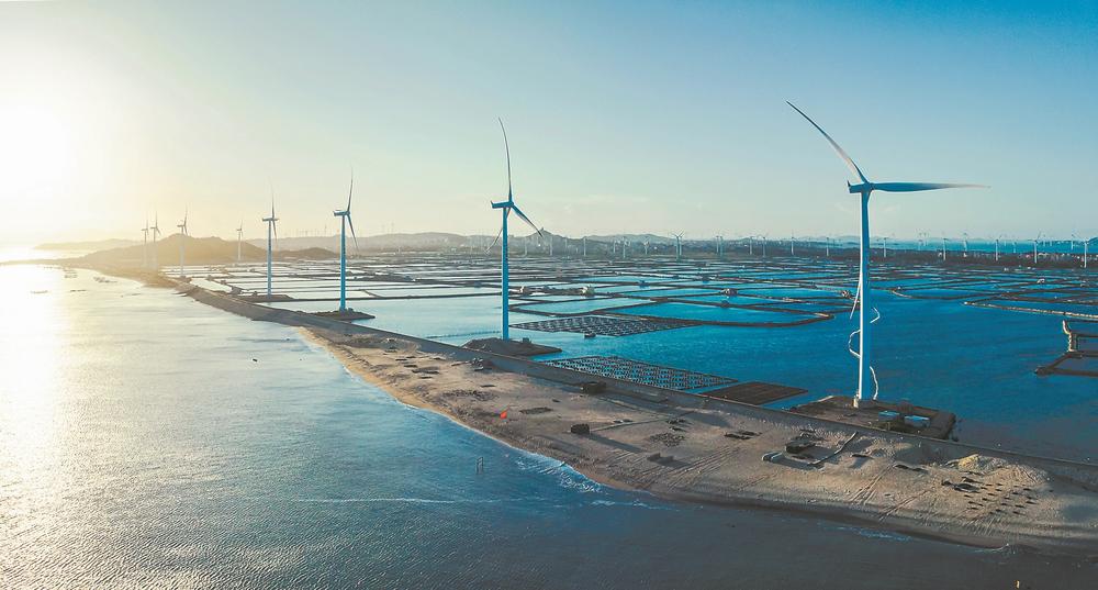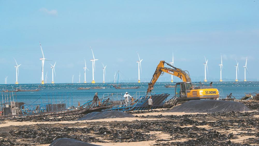 5月底,南日島迎來(lái)海帶大豐收。 南日島西高村,福建新順?biāo)a(chǎn)食品有限公司的海帶加工車(chē)間里馬達(dá)轟鳴。通過(guò)機(jī)械化傳送帶,一條條鮮海帶被工人送上機(jī)器,在48小時(shí)內(nèi)通過(guò)浸泡、清洗、蒸煮,快速熟化,去除腥味、雜質(zhì),完成第一次蛻變。經(jīng)過(guò)鹽漬后,海帶被送到面積1000平方米的冷庫(kù),在-18℃的環(huán)境中進(jìn)行保存。 與傳統(tǒng)的干制海帶不同,鹽漬海帶保持了一定的水分風(fēng)味,在低溫環(huán)境中保存,有利于后續(xù)的精深加工。車(chē)間負(fù)責(zé)人游瑞海介紹說(shuō),去年他們引進(jìn)了大連的生產(chǎn)線,到目前已經(jīng)加工6000噸的鮮海帶。未來(lái)他們將擴(kuò)大產(chǎn)能,新增一條鹽漬海帶生產(chǎn)線,新建1000平方米生產(chǎn)車(chē)間,還將生產(chǎn)海帶絲、海帶結(jié)等產(chǎn)品,冷庫(kù)的庫(kù)容量也會(huì)達(dá)到萬(wàn)噸級(jí)別。 “海帶深加工,效益要比現(xiàn)有模式高出3倍左右,不僅解決當(dāng)?shù)厥S鄤趧?dòng)力問(wèn)題,還可降低養(yǎng)殖戶因天氣、市場(chǎng)變化帶來(lái)的風(fēng)險(xiǎn)?!绷种竞檎f(shuō),目前南日島正力推鹽漬海帶加工,計(jì)劃投建大型冷庫(kù)和規(guī)?;?、自動(dòng)化海帶養(yǎng)殖基地及生產(chǎn)加工基地,從產(chǎn)業(yè)源頭上提質(zhì)增效。 當(dāng)前,南日島推進(jìn)全產(chǎn)業(yè)鏈轉(zhuǎn)型升級(jí),尤其是二三產(chǎn)業(yè)的“強(qiáng)鏈”“補(bǔ)鏈”。全力壯大二產(chǎn),南日島加快東岱海產(chǎn)品加工園區(qū)和海產(chǎn)品交易中心建設(shè),發(fā)展水產(chǎn)品冷鏈物流和倉(cāng)儲(chǔ)業(yè)務(wù)。全力拓展三產(chǎn),加強(qiáng)“福鮑網(wǎng)”平臺(tái)引流工作,推進(jìn)“國(guó)鮑薈”研學(xué)中心運(yùn)營(yíng),構(gòu)建水產(chǎn)品線上線下銷(xiāo)售貿(mào)易模式。 “漁業(yè)+” 融合更多可能 南日風(fēng)大。據(jù)統(tǒng)計(jì),全年5、6級(jí)風(fēng)時(shí)間達(dá)300天以上。 在山頂,在海邊,在海天交接處,幾乎都能看到潔白風(fēng)車(chē)如林矗立。風(fēng)車(chē)轉(zhuǎn)動(dòng),將原本穿島而過(guò)的風(fēng),變成了清潔能源與經(jīng)濟(jì)資源。 林志洪介紹說(shuō),目前共267臺(tái)風(fēng)機(jī)已全部投產(chǎn)發(fā)電,年發(fā)電量超22億千瓦時(shí)。 2022年,全島用電量7200萬(wàn)千瓦時(shí),清潔能源普及率達(dá)89.50%;風(fēng)電全部并網(wǎng)發(fā)電后共上交稅費(fèi)2.33億元,島上8個(gè)村籌資560萬(wàn)元入股風(fēng)電項(xiàng)目,通過(guò)分紅實(shí)現(xiàn)年增收約50萬(wàn)元。 唱好深遠(yuǎn)海養(yǎng)殖的融合發(fā)展之歌,在海洋綜合開(kāi)發(fā)上,南日島不斷邁出新步伐。