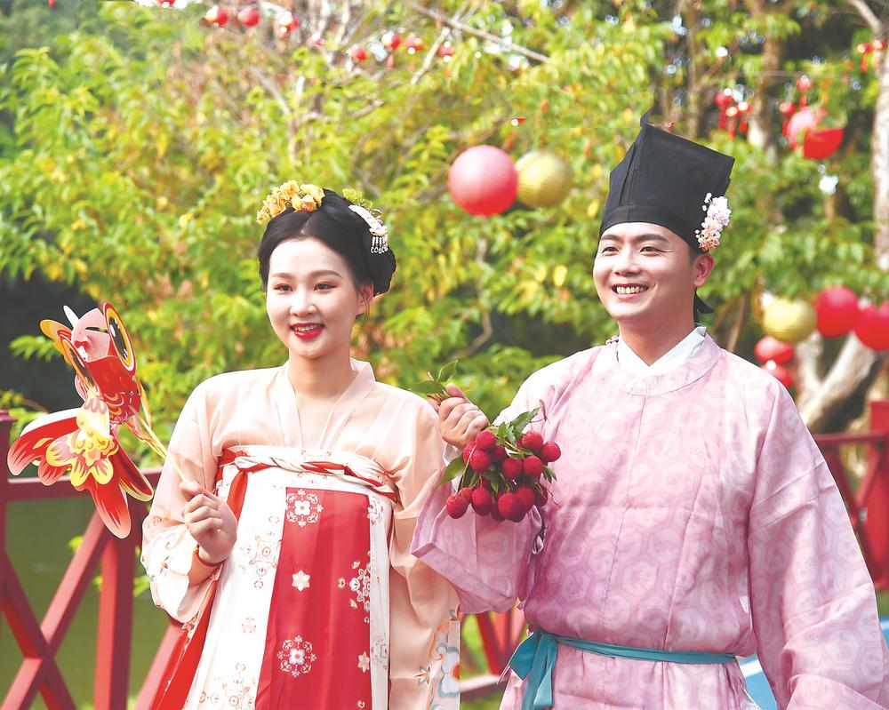 作為“莆陽爽夏”系列活動(dòng)之一,14日,莆田市荔城區(qū)第二屆荔枝文化美食節(jié)在西天尾鎮(zhèn)北大村荔林水鄉(xiāng)公園廣場開幕。福建日報(bào)記者 林劍波 通訊員 朱崇飛 攝 《鼓舞豐收》《木蘭雅敘》《采荔舞》等文藝節(jié)目表演,洋溢著豐收的喜悅和濃厚的節(jié)慶氛圍;給“荔”寶貝國風(fēng)才藝匯演、“荔”志趣味親子運(yùn)動(dòng)會(huì)、青年職工荔枝節(jié)國風(fēng)雅集、我為荔城代言推廣、國風(fēng)水上婚禮表演、荔枝快遞包裝職業(yè)技能競賽等多樣配套活動(dòng)內(nèi)容精彩紛呈,貼近市民日常生活;荔枝惠農(nóng)直播和專家訪談,介紹推廣莆田特有的狀元紅、陳紫荔枝等優(yōu)質(zhì)品種和荔城荔枝文化,大受網(wǎng)民追捧,訪談和直播活動(dòng)“吸睛”又“吸金”。 莆田有千年荔枝種植史,木蘭溪一泓碧水穿城而過,滋養(yǎng)了近4000畝的荔枝林帶,轄區(qū)內(nèi)百年以上的荔枝樹達(dá)9500多株,荔林樹下荔枝香成為莆仙兒女刻在記憶里的思念與鄉(xiāng)愁。 “今年以來,我們按照市委市政府建設(shè)‘千古木蘭溪、百里江山圖、十里風(fēng)光帶’的部署,深入挖掘木蘭溪、興化府歷史文化街區(qū)、北大村、東陽村等古河、古街、古村的文旅資源,拓展‘文化+非遺+鄉(xiāng)村+旅游’新業(yè)態(tài),舉辦了‘莆陽開春’‘莆陽爽夏’等系列活動(dòng),成功打造了多個(gè)文旅IP?!逼翁锸欣蟪菂^(qū)委書記張福清表示,在相對清涼的荔林水鄉(xiāng)伴著千畝荔枝林舉辦荔枝文化美食節(jié),目的就是以荔枝文化特色搭臺(tái),推動(dòng)旅游、文化、非遺、食品、農(nóng)業(yè)、新零售等多業(yè)態(tài)融合,進(jìn)一步點(diǎn)燃城市激情、激發(fā)消費(fèi)活力,做大做強(qiáng)做旺文旅經(jīng)濟(jì)。 為期3天的荔枝文化美食節(jié)是“莆陽爽夏”系列活動(dòng)之一。和荔林水鄉(xiāng)一樣能“一鍵開啟”清涼模式的還有附近的綬溪公園。在這里,各類植物高低錯(cuò)落生機(jī)盎然,隨處可見的涼亭、長廊,還有水上巴士,吸引不少市民結(jié)伴游玩,和太陽公公躲貓貓,盡享平常日子里清涼舒爽的“詩和遠(yuǎn)方”。 走過花木扶疏,沿著慢行步道一路前行,清風(fēng)徐來、流水淙淙,水鳥棲息在岸邊,天地間洋溢著一派靈動(dòng)生機(jī)。泛舟溪上,在兩岸荔林間穿梭,微風(fēng)輕拂,美景在前,感受“人在水上,水在畫中”,讓很多游客心曠神怡。粉嫩的荷花與碧綠的荷葉相映成趣,微風(fēng)吹拂隨之搖曳,無形中驅(qū)散了夏日的燥熱。 高山巖洞成避暑勝地