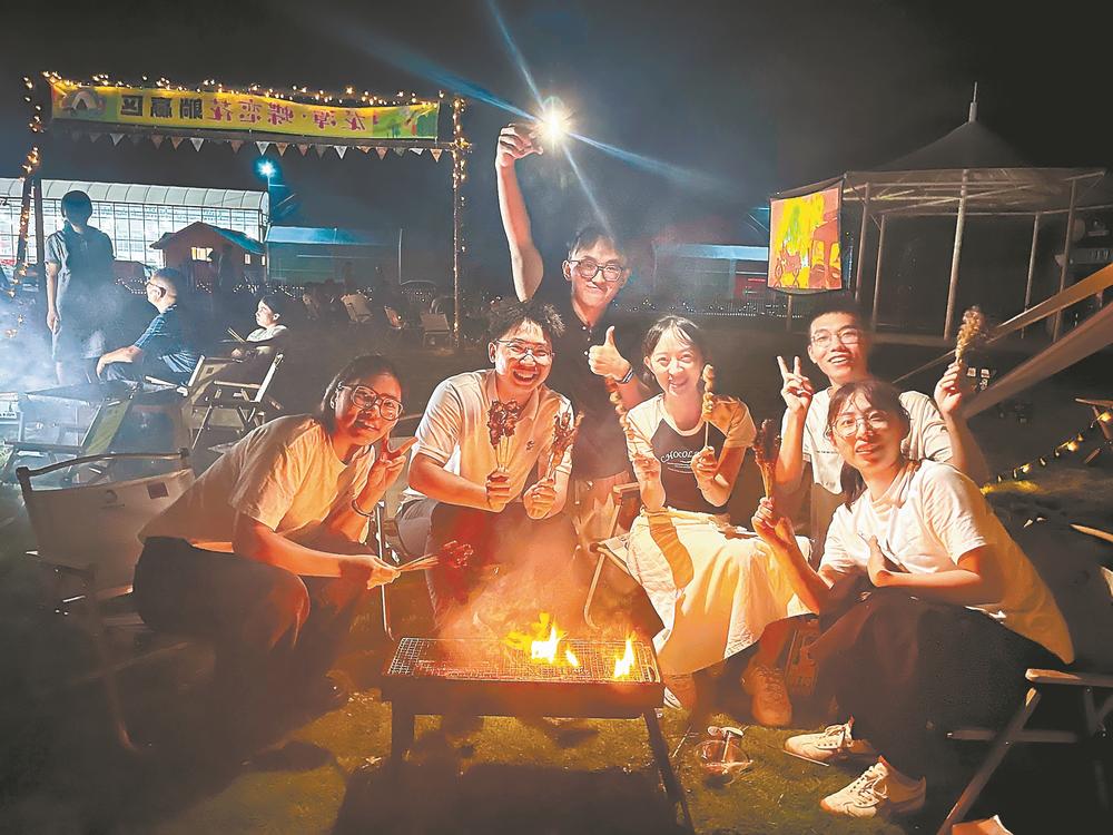 龍巖市永定區(qū)在蝴蝶蘭產(chǎn)業(yè)園中打造“蝶戀花”露營(yíng)地,并于8月投入運(yùn)營(yíng)。圖為游客在其中露營(yíng)聯(lián)歡。黃秋萍 盧燁 攝