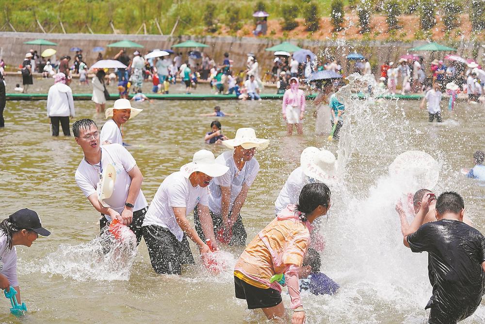 今年暑期,有“天然空調(diào)城”美譽(yù)的周寧縣成為避暑好去處。圖為7月,游客在當(dāng)?shù)氐挠H涼谷水中嬉戲。福建日?qǐng)?bào)記者 林輝 通訊員 劉志瑋 攝