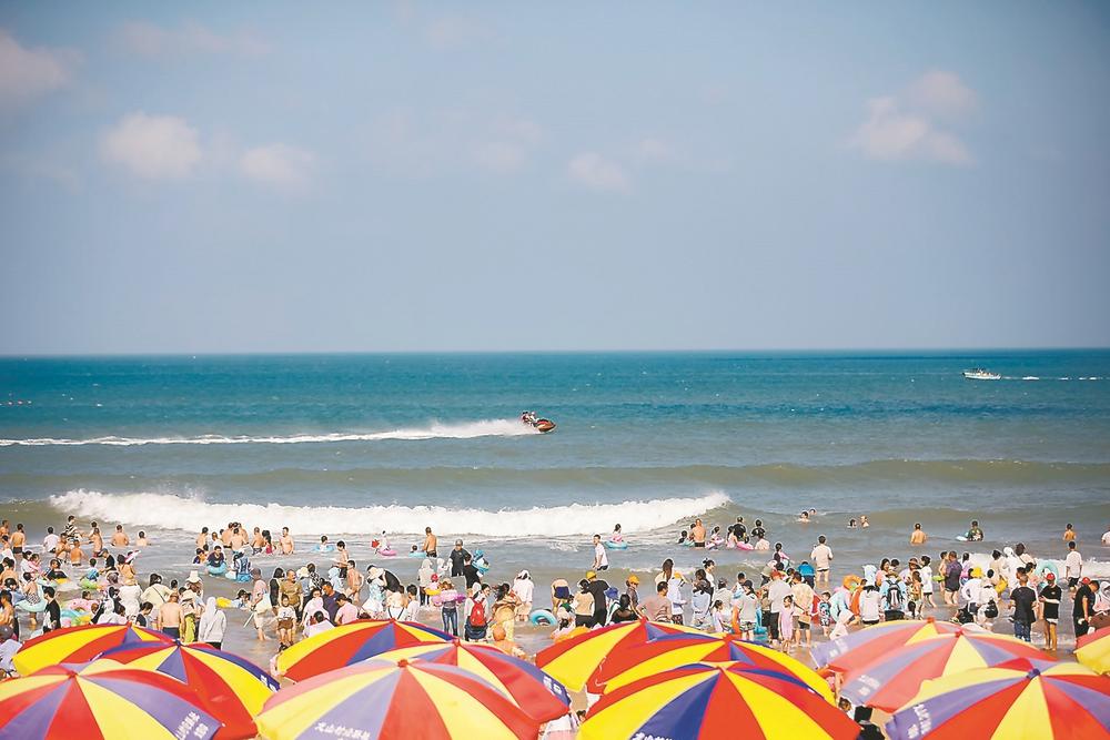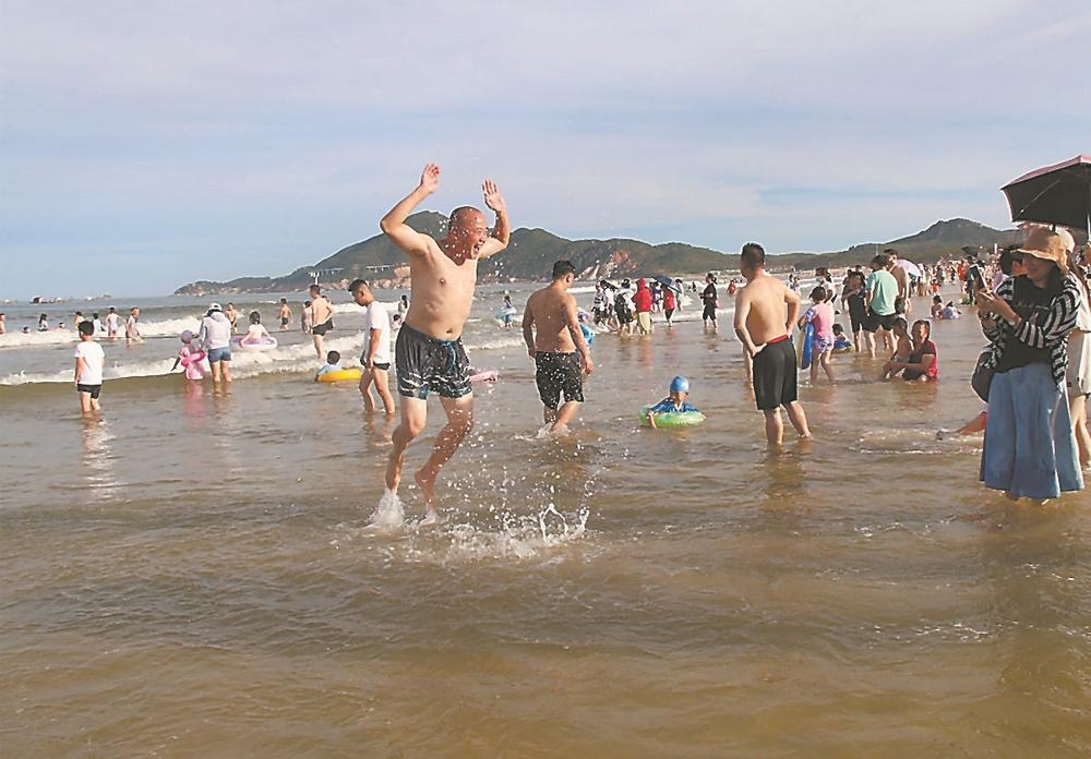 今年,東山縣全面提升濱海旅游“十大景區(qū)”,打造一批旅游新亮點(diǎn)。圖為今年暑期,游客在金鑾灣沙灘中嬉水。 謝漢杰 攝