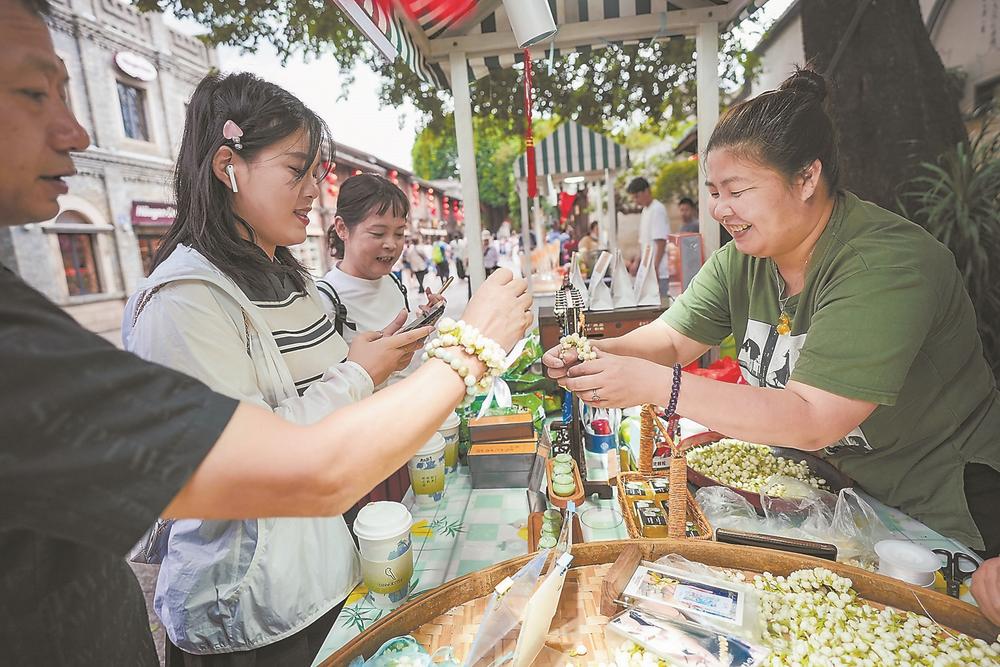 10月5日,一場(chǎng)由軟木畫(huà)、茉莉花、面人、風(fēng)味小吃等非物質(zhì)文化遺產(chǎn)項(xiàng)目組成的集市,在福州三坊七巷受到市民和游客熱捧,讓大家在節(jié)日期間感受福州非遺文化的獨(dú)特魅力。圖為游客在挑選茉莉花手串。福建日?qǐng)?bào)通訊員 謝貴明 攝 金秋時(shí)節(jié),中秋國(guó)慶“雙節(jié)”聯(lián)動(dòng),節(jié)日氛圍格外濃厚。人們或與親朋好友歡聚一堂,或到紅色景區(qū)瞻仰朝圣,或攜全家老小助威亞運(yùn)……豐富多彩的文化活動(dòng)令假期洋溢著家國(guó)溫情。 情懷激蕩 紅色,是國(guó)慶節(jié)主色調(diào)。在革命圣地陜西延安,全國(guó)各地游客紛至沓來(lái)。 記者在楊家?guī)X革命舊址看到,講解員聲情并茂地講述革命歷史,游客駐足聆聽(tīng)、神情動(dòng)容。 除了傳統(tǒng)的參觀體驗(yàn),近年來(lái),延安創(chuàng)新挖掘紅色資源,一系列紅色演藝項(xiàng)目吸引了眾多游客。 “《延安保育院》等舞臺(tái)劇在這個(gè)假期場(chǎng)場(chǎng)爆滿、一票難求,充分體現(xiàn)了沉浸式紅色文化體驗(yàn)在傳承延安精神、感染當(dāng)代觀眾方面的獨(dú)特價(jià)值?!标兟眉瘓F(tuán)延安公司總經(jīng)理助理馬男說(shuō)。 這個(gè)“雙節(jié)”假期,恰逢亞運(yùn)會(huì)在浙江杭州舉行,每一個(gè)奪冠時(shí)刻、每一次國(guó)歌響起,都激蕩起熾熱的愛(ài)國(guó)情。 香港青年李淑嫻和朋友早早做好了計(jì)劃:一人負(fù)責(zé)搶亞運(yùn)會(huì)門(mén)票,一人負(fù)責(zé)搶香港到杭州的高鐵票,一人負(fù)責(zé)做杭州游玩攻略。10月1日,3位小伙伴抵達(dá)亞運(yùn)場(chǎng)館“大蓮花”,開(kāi)啟了自己的亞運(yùn)之旅。 在亞運(yùn)場(chǎng)館“大小蓮花”附近的地鐵站、街道廣場(chǎng),滿是拍照“打卡”的游客。 從長(zhǎng)春來(lái)到杭州度假的彭女士說(shuō):“前兩天去了西湖、西溪,專門(mén)定在國(guó)慶這一天來(lái)看‘大小蓮花’,雖然沒(méi)有買到亞運(yùn)會(huì)門(mén)票,但買些亞運(yùn)文創(chuàng)產(chǎn)品很有紀(jì)念意義,在賽場(chǎng)外聽(tīng)到國(guó)歌奏響也感到很自豪?!?/p> 國(guó)風(fēng)勁吹 位于蘇州古城的平江歷史文化街區(qū)熱鬧非凡,假期前6日,這里累計(jì)客流量超80萬(wàn)人次,許多年輕人著漢服、梳發(fā)髻前來(lái)。 平江路大儒巷38號(hào)經(jīng)過(guò)修繕,成為一個(gè)對(duì)外開(kāi)放的特色文化空間。游客們?cè)诠派畔愕脑郝渲新?tīng)評(píng)彈、看演出、品非遺,感受江南風(fēng)情。 在大儒巷設(shè)立的桃花塢木版年畫(huà)展示展銷中心,非遺傳承人與游客現(xiàn)場(chǎng)互動(dòng)很是熱鬧。帶著孩子參與互動(dòng)的浙江游客王女士表示,這些年畫(huà)配色好看,寓意也好,孩子在互動(dòng)體驗(yàn)中可以加深對(duì)非遺項(xiàng)目的認(rèn)識(shí)和對(duì)傳統(tǒng)文化的了解。 “雙節(jié)”期間,北京市民宋慈選擇帶全家來(lái)到河南鄭州,感受中原大地的厚重文明。 作為文化和旅游部節(jié)前發(fā)布的全國(guó)旅游演藝精品項(xiàng)目之一,鄭州的“只有河南·戲劇幻城”通過(guò)高科技手段把黃河文化和河南歷史創(chuàng)造性地濃縮成一場(chǎng)高水準(zhǔn)的演出,擁有總長(zhǎng)近700分鐘的不重復(fù)劇目、56個(gè)變幻無(wú)窮的情景空間。今年假期,主辦方還策劃推出了“花樣告白祖國(guó)”特別節(jié)目和“我愛(ài)你中國(guó)”燈光秀主題活動(dòng),客流量創(chuàng)新高,高峰期日均觀劇達(dá)12萬(wàn)人次。 市場(chǎng)紅火 中秋節(jié)、國(guó)慶節(jié)期間歷來(lái)是消費(fèi)旺季,逛書(shū)店、看戲劇、聽(tīng)演唱會(huì)成為人們文化消費(fèi)的重要組成部分。在廣東,沉浸式喜歌劇《蘋(píng)果之夜》開(kāi)票后即“秒光”。 “雙節(jié)”期間,中外精品劇目輪番在廣州上演:上海歌劇院舞劇團(tuán)的舞劇《嫦娥》、西班牙塞維利亞弗拉門(mén)戈舞蹈團(tuán)的舞劇《卡門(mén)》、國(guó)家京劇院的《龍鳳呈祥》《穆桂英掛帥》…… “我們想將傳統(tǒng)的、藝術(shù)的歌劇演出變得更有趣,吸引更多觀眾走進(jìn)劇院?!薄短O(píng)果之夜》藝術(shù)總監(jiān)、星海音樂(lè)學(xué)院歌劇中心主任楊巖說(shuō),“希望通過(guò)我們的努力,讓演藝市場(chǎng)更加繁榮?!?/p> 有人流連城市,有人追尋遠(yuǎn)方。不久前,“普洱景邁山古茶林文化景觀”成為我國(guó)第57項(xiàng)世界遺產(chǎn)。假期中,這個(gè)云南新晉世界遺產(chǎn)地人氣攀升,迎來(lái)申遺成功后的首個(gè)旅游打卡熱潮。據(jù)統(tǒng)計(jì),9月29日至10月4日,景邁山接待外來(lái)游客超過(guò)1.5萬(wàn)人次。 來(lái)自四川成都的游客劉亮特意為自己安排了“茶香之旅”,在景邁山待了3天。他感慨:“茶融入了這里人們的日常生活,讓我感受到人茶共生的獨(dú)特文化傳承?!?/p> |