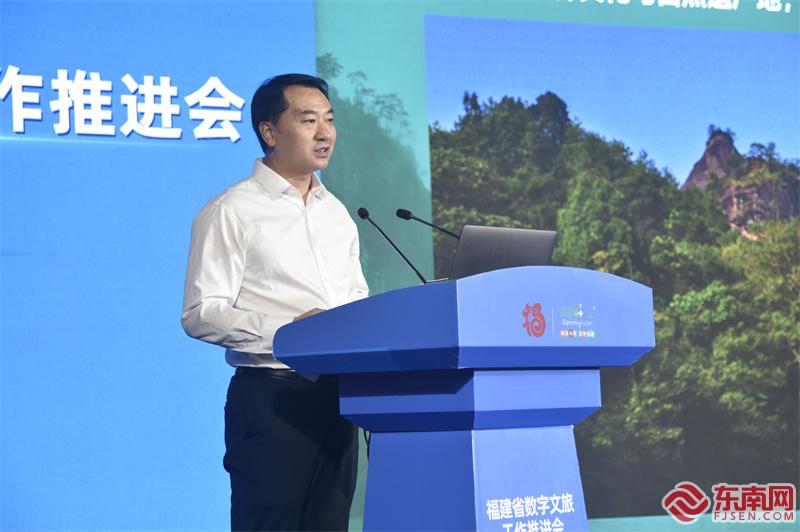 福建省數(shù)字文旅工作推進(jìn)會(huì)現(xiàn)場(chǎng) 東南網(wǎng)記者陳佳穎 攝 會(huì)上,陶誠對(duì)福建省積極培育文旅科技創(chuàng)新載體,打造數(shù)字化示范標(biāo)桿等工作給予肯定和鼓勵(lì),并站在以數(shù)字化賦予文化和旅游新動(dòng)能、以文化和旅游的高質(zhì)量發(fā)展為中國式現(xiàn)代化建設(shè)添磚加瓦的高度,結(jié)合人工智能、物聯(lián)網(wǎng)、虛擬現(xiàn)實(shí)等數(shù)字技術(shù)的發(fā)展,指出文化和旅游數(shù)字化工作即將迎來提質(zhì)增效的關(guān)鍵發(fā)展階段,為福建省接下來開展數(shù)字文旅工作指明了方向。他要求福建以此次會(huì)議為契機(jī),以更加堅(jiān)定的姿態(tài)和務(wù)實(shí)的舉措,推進(jìn)文化和旅游數(shù)字化工作邁上新臺(tái)階。 為落實(shí)黨中央、國務(wù)院關(guān)于文化數(shù)字化、推進(jìn)“互聯(lián)網(wǎng)+旅游”等工作要求,落細(xì)文化和旅游部的部署要求和福建省文旅經(jīng)濟(jì)發(fā)展大會(huì)精神,受省文旅廳黨組書記、廳長林向東的委托,蘇慶賜從福建省數(shù)字文旅產(chǎn)業(yè)發(fā)展布局、數(shù)字化變革、智慧化運(yùn)營等方面提出未來工作方向。他指出,要站位全國、立足福建和長遠(yuǎn),深刻把握數(shù)字文旅重大發(fā)展機(jī)遇,堅(jiān)決扛起數(shù)字文旅高質(zhì)量發(fā)展的使命擔(dān)當(dāng),牢牢把握發(fā)展數(shù)字文旅的機(jī)遇與挑戰(zhàn)、優(yōu)勢(shì)和短板、發(fā)展趨勢(shì)和要求。他強(qiáng)調(diào),要錨定“數(shù)字文旅”新賽道主跑道,打造文旅經(jīng)濟(jì)發(fā)展新引擎,著重用好市場(chǎng)內(nèi)驅(qū)力、跨界融合力、政策執(zhí)行力,堅(jiān)決把數(shù)字文旅作為基礎(chǔ)性、先導(dǎo)性工程,構(gòu)建“1+2+3+N”發(fā)展新格局。