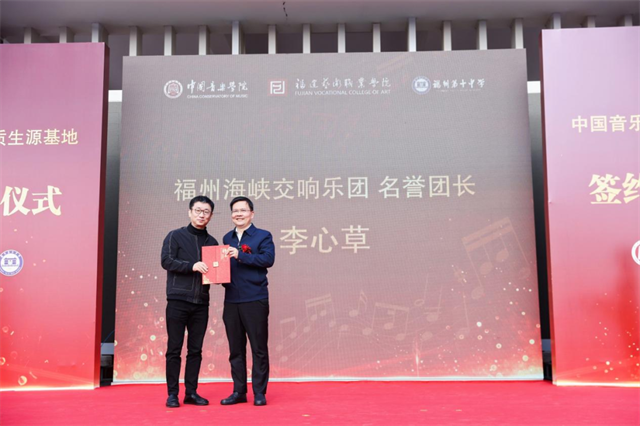 12月5日,由福建省文化和旅游廳指導(dǎo),中國音樂學(xué)院、福建藝術(shù)職業(yè)學(xué)院、福州第十中學(xué)(福州市晉安榕博中學(xué))圍繞長學(xué)制藝術(shù)人才培養(yǎng)機(jī)制,在福州成功舉行合作簽約儀式,“中國音樂學(xué)院優(yōu)質(zhì)生源基地”順利落地福州第十中學(xué)(福州市晉安榕博中學(xué))。 福建省文化和旅游廳黨組書記、廳長林向東,中國音樂學(xué)院院長李心草,中國音協(xié)副主席、中國音樂學(xué)院教授、博士生導(dǎo)師、著名女高音歌唱家雷佳,福建省文化和旅游廳黨組成員、副廳長吳新斌,福建藝術(shù)職業(yè)學(xué)院黨委書記陳晟,福建藝術(shù)職業(yè)學(xué)院黨委副書記、院長孫礫,福州市委教育工委書記、市教育局黨組書記、局長游昕,福州市委教育工委委員、市教育局黨組成員、副局長念琪,晉安區(qū)委書記林濤,晉安區(qū)政協(xié)副主席、教育局局長楊佳松,福州市晉安榕博教育集團(tuán)黨委書記、福州第十中學(xué)(福州市晉安榕博中學(xué))黨委書記陳黎芬,福州第十中學(xué)(福州市晉安榕博中學(xué))校長楊青,省文旅廳、晉安區(qū)教育局、中國音樂學(xué)院、福州第十中學(xué)、福建藝術(shù)職業(yè)學(xué)院的相關(guān)領(lǐng)導(dǎo)和師生參加了揭牌儀式。 福建省文化和旅游廳黨組書記、廳長林向東為李心草授福州海峽交響樂團(tuán)名譽(yù)團(tuán)長證書。 “中國音樂學(xué)院優(yōu)質(zhì)生源基地”掛牌。 本次簽約合作旨在深入貫徹落實習(xí)近平文化思想,文化和旅游部 教育部《關(guān)于促進(jìn)新時代文化藝術(shù)職業(yè)教育高質(zhì)量發(fā)展的指導(dǎo)意見》,福建省文化和旅游廳 福建省教育廳《關(guān)于促進(jìn)新時代文化藝術(shù)職業(yè)教育高質(zhì)量發(fā)展的實施方案》等文件精神,遵循藝術(shù)類專業(yè)人才培養(yǎng)規(guī)律,提升文化藝術(shù)職業(yè)教育人才培養(yǎng)質(zhì)量,服務(wù)我省文旅經(jīng)濟(jì)發(fā)展戰(zhàn)略,推動文化藝術(shù)職業(yè)教育高質(zhì)量發(fā)展提供人才支撐。 今年,福建藝術(shù)職業(yè)學(xué)院與福州第十中學(xué)聯(lián)合舉辦“長學(xué)制藝術(shù)專班”,首批開展音樂表演、舞蹈表演專業(yè)人才專班培養(yǎng);在福建省文化和旅游廳的有力推動下,福建藝術(shù)職業(yè)學(xué)院與福建省歌舞劇院、福州海峽交響樂團(tuán)等省屬文藝院團(tuán)建立深度融合發(fā)展關(guān)系,為長學(xué)制藝術(shù)人才培養(yǎng)搭建優(yōu)質(zhì)平臺。 福州海峽交響樂團(tuán)現(xiàn)場演奏貫穿全場活動。 在省內(nèi)多點協(xié)作、精準(zhǔn)發(fā)力助推我省文化事業(yè)和文旅產(chǎn)業(yè)高質(zhì)量發(fā)展的同時,福建藝術(shù)職業(yè)學(xué)院積極對接優(yōu)質(zhì)教學(xué)資源,探索與一流藝術(shù)院校合作,推進(jìn)不同層次職業(yè)教育縱向貫通培養(yǎng)。此前不久,福建藝術(shù)職業(yè)學(xué)院與上海舞蹈學(xué)校(上海戲劇學(xué)院附屬舞蹈學(xué)校)、福州第十中學(xué)共同簽約掛牌“上海市舞蹈學(xué)校(上海戲劇學(xué)院附屬舞蹈學(xué)校)共建學(xué)?!?,此次推動“中國音樂學(xué)院優(yōu)質(zhì)生源基地”落地榕城,將進(jìn)一步推進(jìn)職普融通育人機(jī)制,強(qiáng)化優(yōu)勢互補(bǔ)、資源共享、深度合作,為培養(yǎng)具有創(chuàng)新精神和符合新時代實踐能力的閩派文化藝術(shù)人才,為文旅經(jīng)濟(jì)、文藝事業(yè)高質(zhì)量發(fā)展提供智力支撐。 |