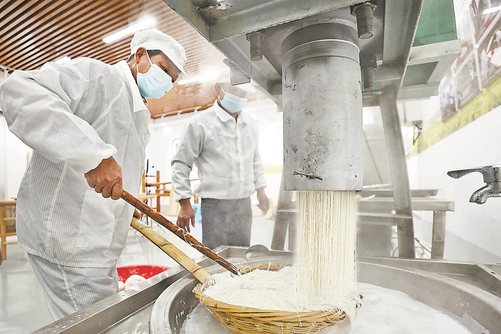 東南網(wǎng)12月18日訊(福建日報(bào)記者 林輝 通訊員 黃尉峰 攝影報(bào)道)近日,在寧化縣方田聯(lián)村古坑米粉生產(chǎn)項(xiàng)目車間,員工正在生產(chǎn)米粉產(chǎn)品。該項(xiàng)目形成原材料種植、加工、銷售一體化的產(chǎn)業(yè)鏈閉環(huán)?,F(xiàn)有米粉專用稻生產(chǎn)基地3000畝,日產(chǎn)米粉可達(dá)650公斤,預(yù)計(jì)每年可增加聯(lián)村村集體經(jīng)濟(jì)收入約10萬元,實(shí)現(xiàn)了企業(yè)盈利、集體創(chuàng)收、村民增收三方共贏的局面。 近年來,寧化縣以跨村聯(lián)建為抓手,統(tǒng)籌朱王、方田、村頭等聯(lián)建村土地、資金、信息等要素資源,建成方田聯(lián)村古坑米粉生產(chǎn)項(xiàng)目,將古坑米粉產(chǎn)業(yè)確定為鄉(xiāng)村振興重點(diǎn)發(fā)展產(chǎn)業(yè)。 |