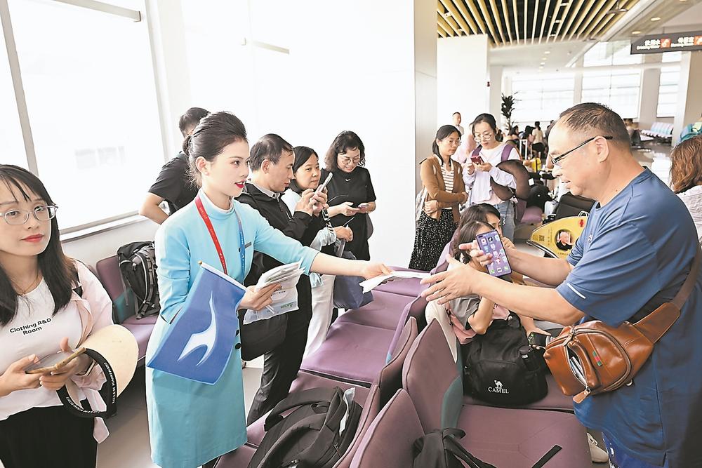廈航地服工作人員為“廈門(mén)—馬累”航線旅客發(fā)放手機(jī)防水袋與鑰匙扣伴手禮。 東南網(wǎng)7月31日訊 (福建日?qǐng)?bào)記者 鄧婕 田圓 通訊員 張煒康 文/圖) “馬爾代夫,我們來(lái)啦!”在登機(jī)口前,歡呼聲與笑聲此起彼伏,在熱烈的氛圍中,旅客朋友紛紛在“廈門(mén)—馬爾代夫正式啟航”的橫幅前打卡合影。 北京時(shí)間7月30日14:30,一架廈航波音787客機(jī)自廈門(mén)啟航,飛向馬爾代夫維拉娜國(guó)際機(jī)場(chǎng),正式宣告廈航“廈門(mén)—馬累”定期航線的開(kāi)啟,這是廈航的首條南亞航線,也是福建首條直飛馬爾代夫的定期航線。 “廈門(mén)—馬累”航線航班號(hào)為MF889/90,以?xún)芍転橹芷?,第一周為周二、六各一班;第二周為周四一班,去程航班為北京時(shí)間12:10—21:05,回程航班為22:05—07:00。此前,大多旅客前往馬爾代夫都選擇到上海乘機(jī),隨著“廈門(mén)—馬累”直飛航班的開(kāi)通,福建旅客將至少省去3小時(shí)的行程時(shí)間,還可節(jié)省20%~30%的出行費(fèi)用。同時(shí),從北京、昆明、成都,長(zhǎng)沙、杭州等地的旅客通過(guò)廈航自廈門(mén)中轉(zhuǎn)到達(dá)馬爾代夫,可享受廈航在廈門(mén)機(jī)場(chǎng)的“通程中轉(zhuǎn)”服務(wù),收獲更加便捷高效的中轉(zhuǎn)體驗(yàn)。 為保障該航線順利開(kāi)通,高崎邊檢站提前部署優(yōu)化勤務(wù)方案,與機(jī)場(chǎng)、航空公司等口岸單位加強(qiáng)溝通,密切關(guān)注航班動(dòng)態(tài),根據(jù)航班、旅客實(shí)時(shí)情況及時(shí)調(diào)整工作預(yù)案,科學(xué)配置執(zhí)勤警力,開(kāi)足查驗(yàn)通道,落實(shí)落細(xì)查驗(yàn)措施,優(yōu)化工作流程,提高通關(guān)效率,為旅客營(yíng)造舒適、快捷、高效的通關(guān)環(huán)境,全力保障出入境人員順暢通關(guān)。 |