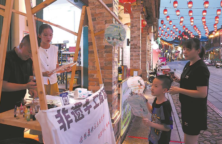 東南網(wǎng)8月27日報道(福建日報通訊員 王旺旺 攝)24日,泉州市永春縣五里街歷史文化街區(qū),市民游客前來打卡游玩。五里古街,作為海上絲綢之路水陸交匯的重要節(jié)點名揚海內(nèi)外,是中國傳統(tǒng)村落、中國歷史文化名村、福建省歷史文化街區(qū)。圖為當天傍晚,游客在五里街歷史文化街區(qū)選購非遺手工漆扇。