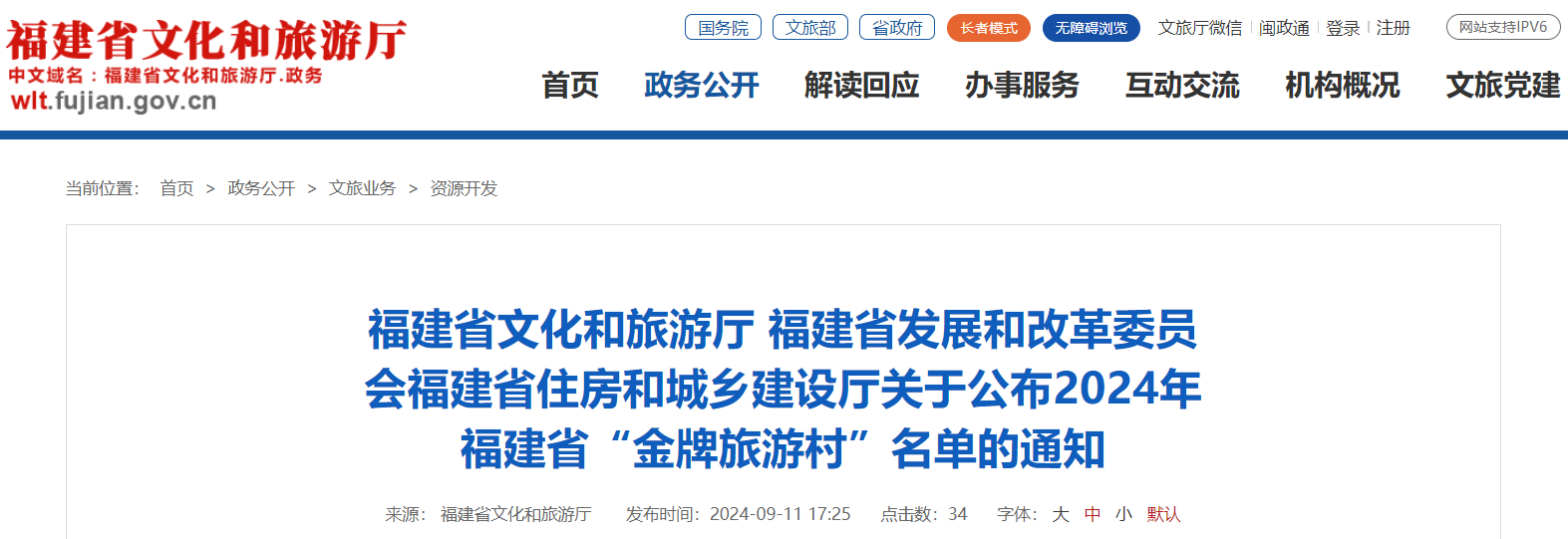 最新通知 福建25個(gè)村 被列入 2024年福建省“金牌旅游村”名單 一起來(lái)看 福建省文化和旅游廳 福建省發(fā)展和改革委員會(huì)福建省住房和城鄉(xiāng)建設(shè)廳關(guān)于公布2024年福建省“金牌旅游村”名單的通知 各設(shè)區(qū)市文旅局、發(fā)改委、住建局,平潭綜合實(shí)驗(yàn)區(qū)旅游文體局、經(jīng)發(fā)局、交建局: 為助力全面推進(jìn)鄉(xiāng)村振興戰(zhàn)略,深入實(shí)施鄉(xiāng)村旅游精品工程,全面提升我省鄉(xiāng)村旅游產(chǎn)品質(zhì)量和發(fā)展效益,省文旅廳、省發(fā)改委、省住建廳聯(lián)合組織開(kāi)展了2024年福建省“金牌旅游村”遴選培育工作。 在各地遴選推薦的基礎(chǔ)上,經(jīng)專(zhuān)家評(píng)審和公示,現(xiàn)將廈門(mén)市翔安區(qū)新圩鎮(zhèn)古宅村等25個(gè)村列入2024年福建省“金牌旅游村”名單。 附件:2024年福建省“金牌旅游村”名單 福建省文化和旅游廳 福建省發(fā)展和改革委員會(huì) 福建省住房和城鄉(xiāng)建設(shè)廳 2024年9月9日 (此件主動(dòng)公開(kāi)) 附件 2024年福建省“金牌旅游村”名單 1. 廈門(mén)市翔安區(qū)新圩鎮(zhèn)古宅村 2.漳州市龍文區(qū)郭坑鎮(zhèn)口社村 3. 莆田市涵江區(qū)白塘鎮(zhèn)雙福村 4. 福州市閩侯縣白沙鎮(zhèn)大目溪村 5. 泉州市石獅市祥芝鎮(zhèn)祥漁村 6. 寧德市周寧縣七步鎮(zhèn)后洋村 7. 三明市將樂(lè)縣南口鎮(zhèn)蛟湖村 8. 龍巖市連城縣莒溪鎮(zhèn)璧洲村 9. 南平市建陽(yáng)區(qū)黃坑鎮(zhèn)長(zhǎng)見(jiàn)村 10. 廈門(mén)市集美區(qū)灌口鎮(zhèn)雙嶺村 11. 漳州市漳浦縣南浦鄉(xiāng)后坑村 12. 泉州市晉江市英林鎮(zhèn)湖尾村 13. 福州市永泰縣葛嶺鎮(zhèn)溪洋村 14. 廈門(mén)市同安區(qū)五顯鎮(zhèn)三秀山村 15. 寧德市福安市社口鎮(zhèn)坦洋村 16. 南平市光澤縣鸞鳳鄉(xiāng)油溪村 17. 三明市明溪縣胡坊鎮(zhèn)肖家山村 18. 莆田市荔城區(qū)西天尾鎮(zhèn)下垞村 19. 漳州市平和縣南勝鎮(zhèn)歐寮村 20. 泉州市永春縣錦斗鎮(zhèn)洪內(nèi)村 21. 南平市松溪縣茶平鄉(xiāng)吳山頭村 22. 平潭綜合實(shí)驗(yàn)區(qū)金井鎮(zhèn)龍海村 23. 寧德市蕉城區(qū)八都鎮(zhèn)猴盾村 24. 福州市馬尾區(qū)亭江鎮(zhèn)白眉村 25. 三明市三元區(qū)洋溪鎮(zhèn)連茂村 |